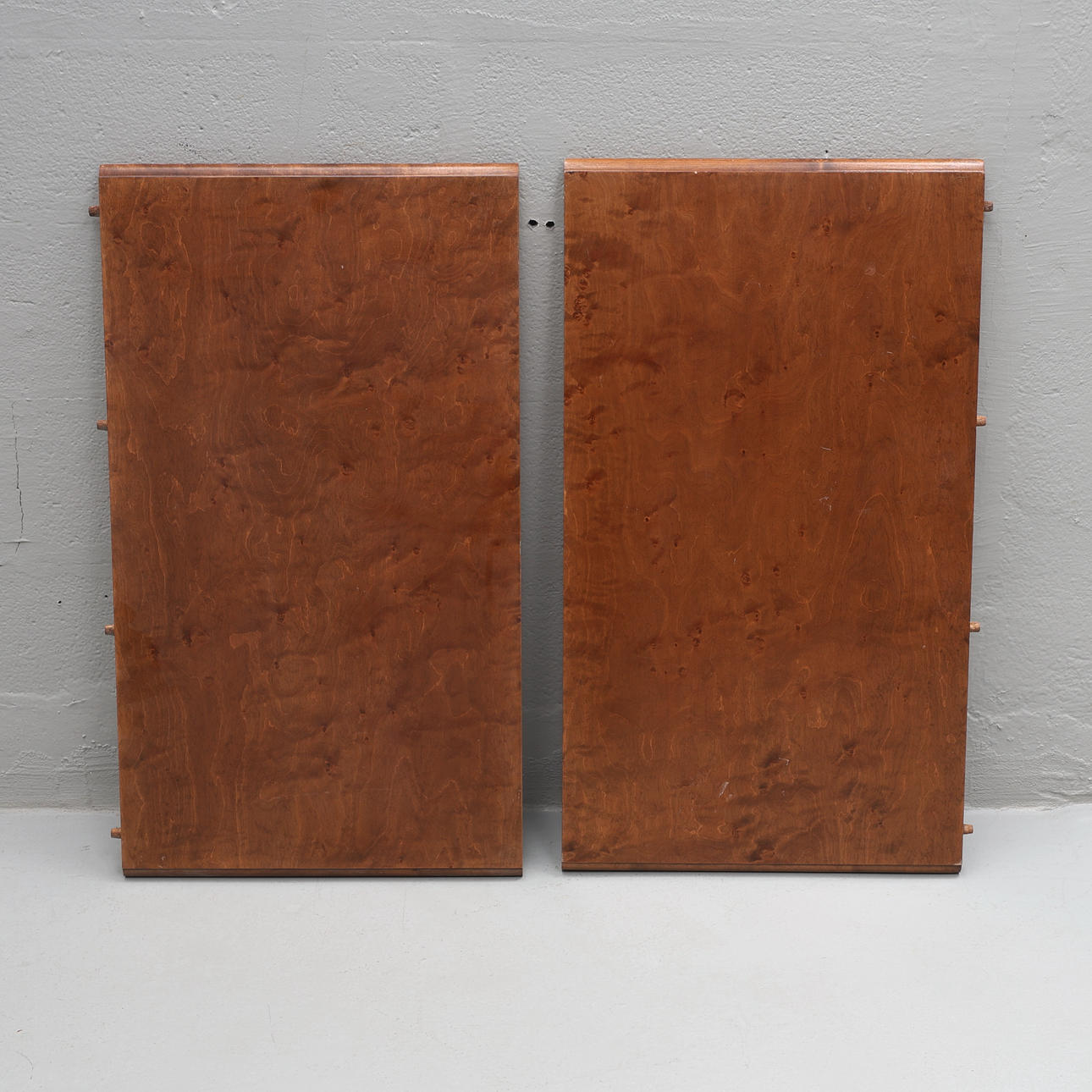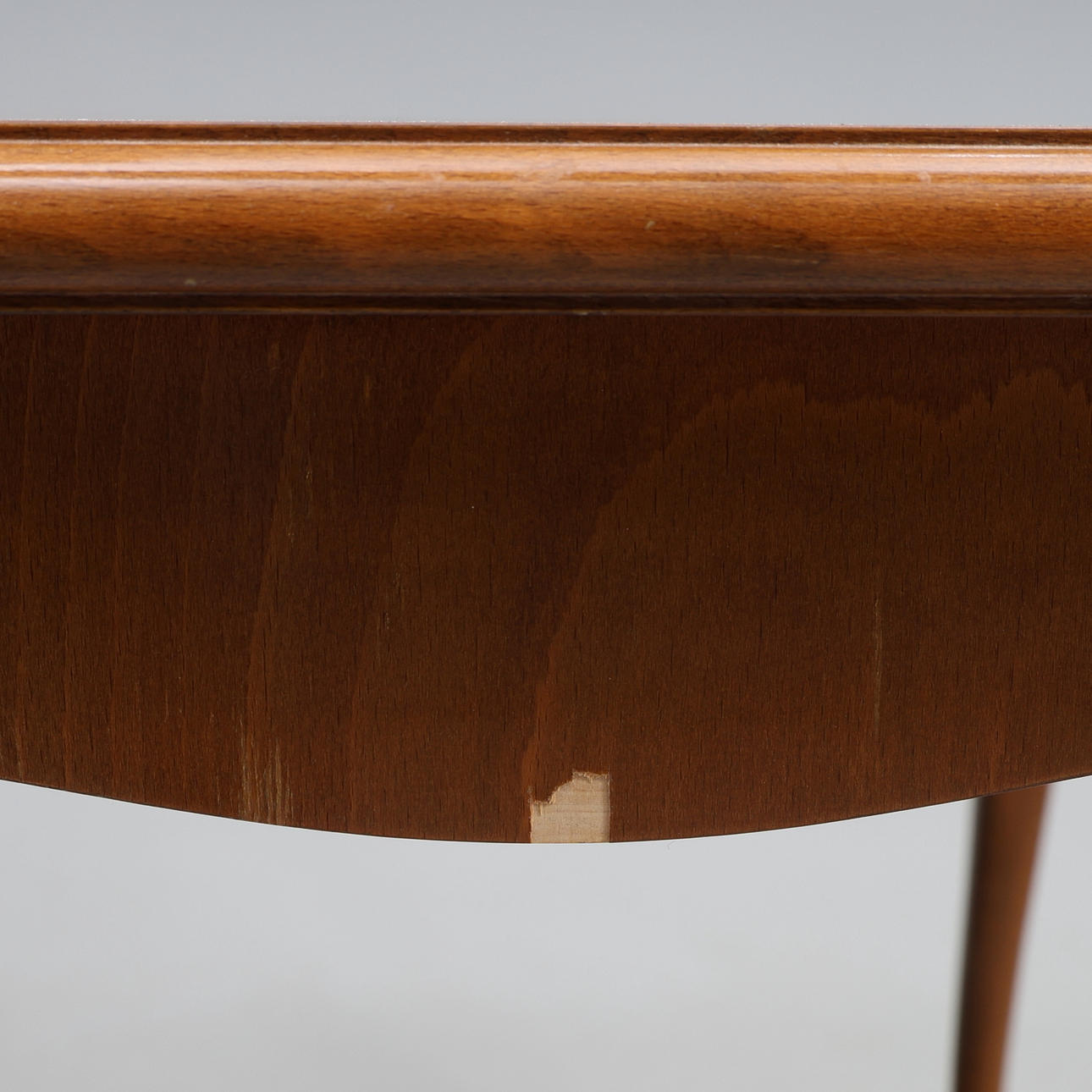 Normal wear and tear, abrasions and marks, wear from varnish, broken veneer, insert boards in other designs.