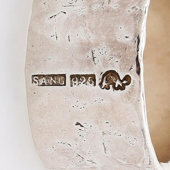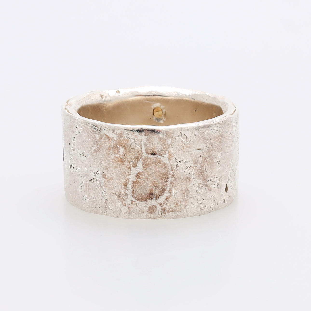 Silver with gold detail, 18k.