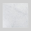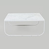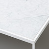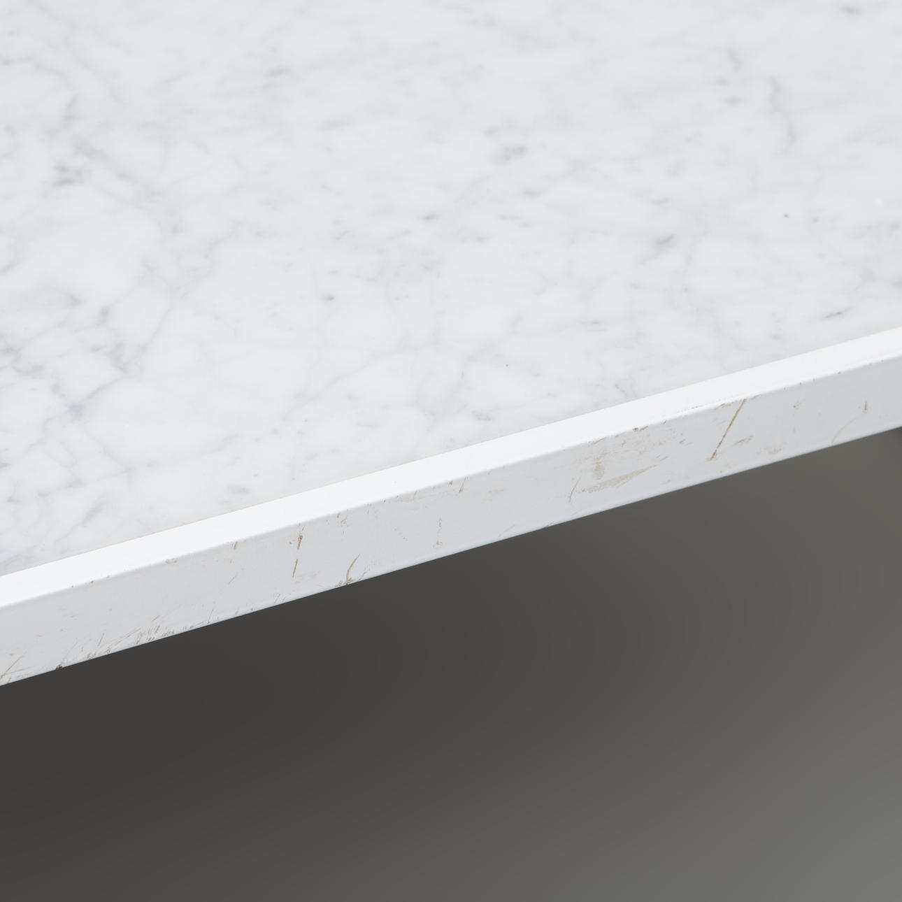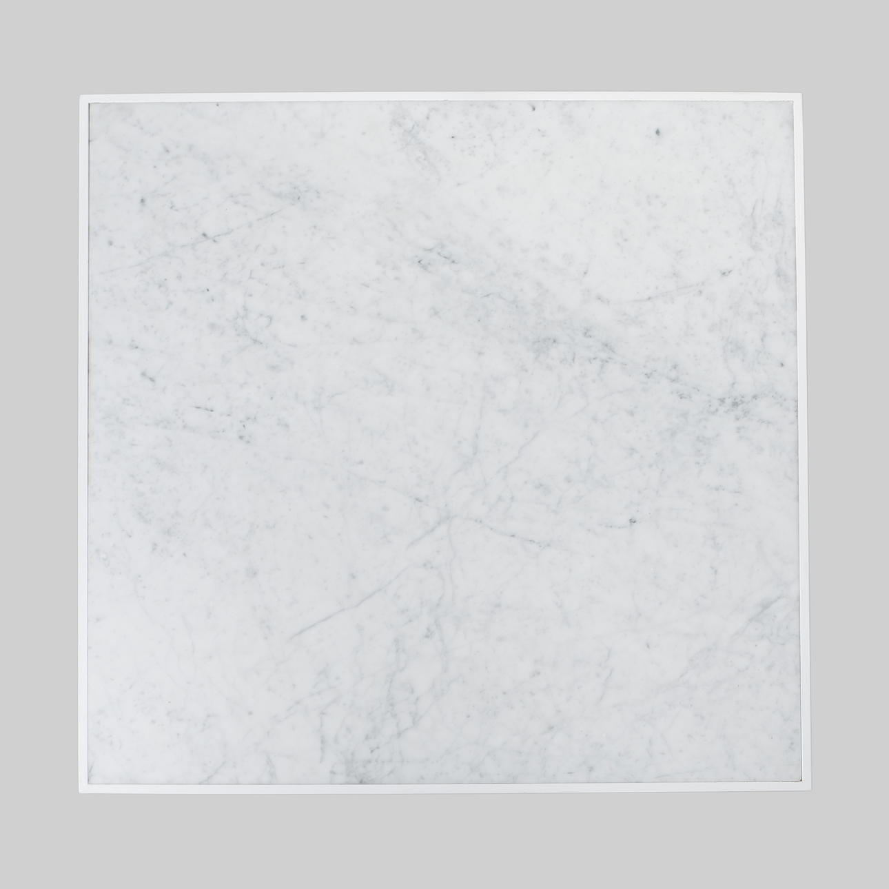 White lacquered metal frame with marble top. Dimensions approx. 90 x 90 x 37 cm.
