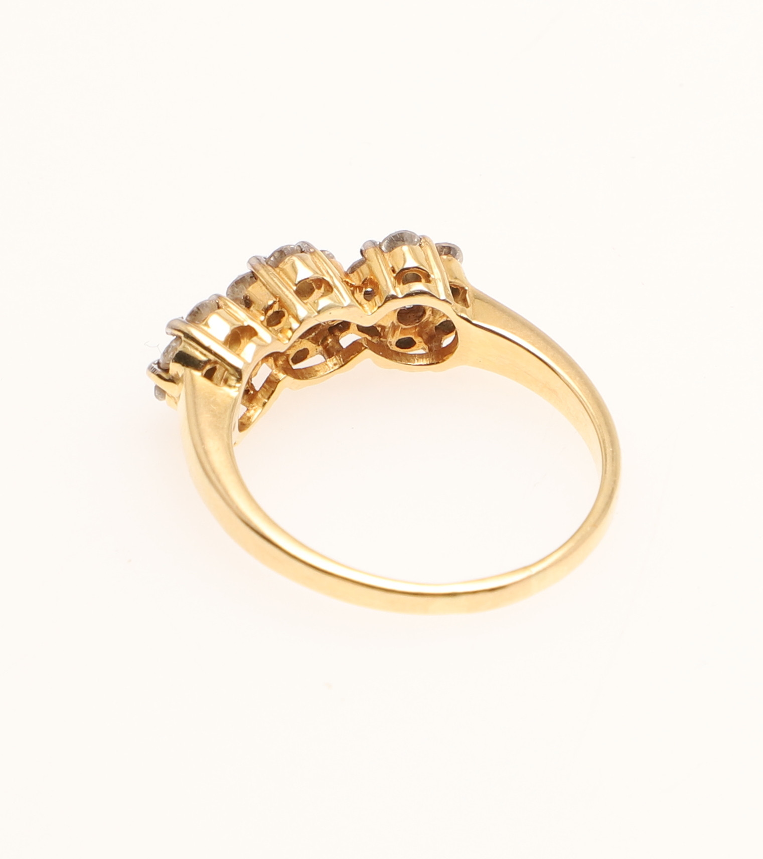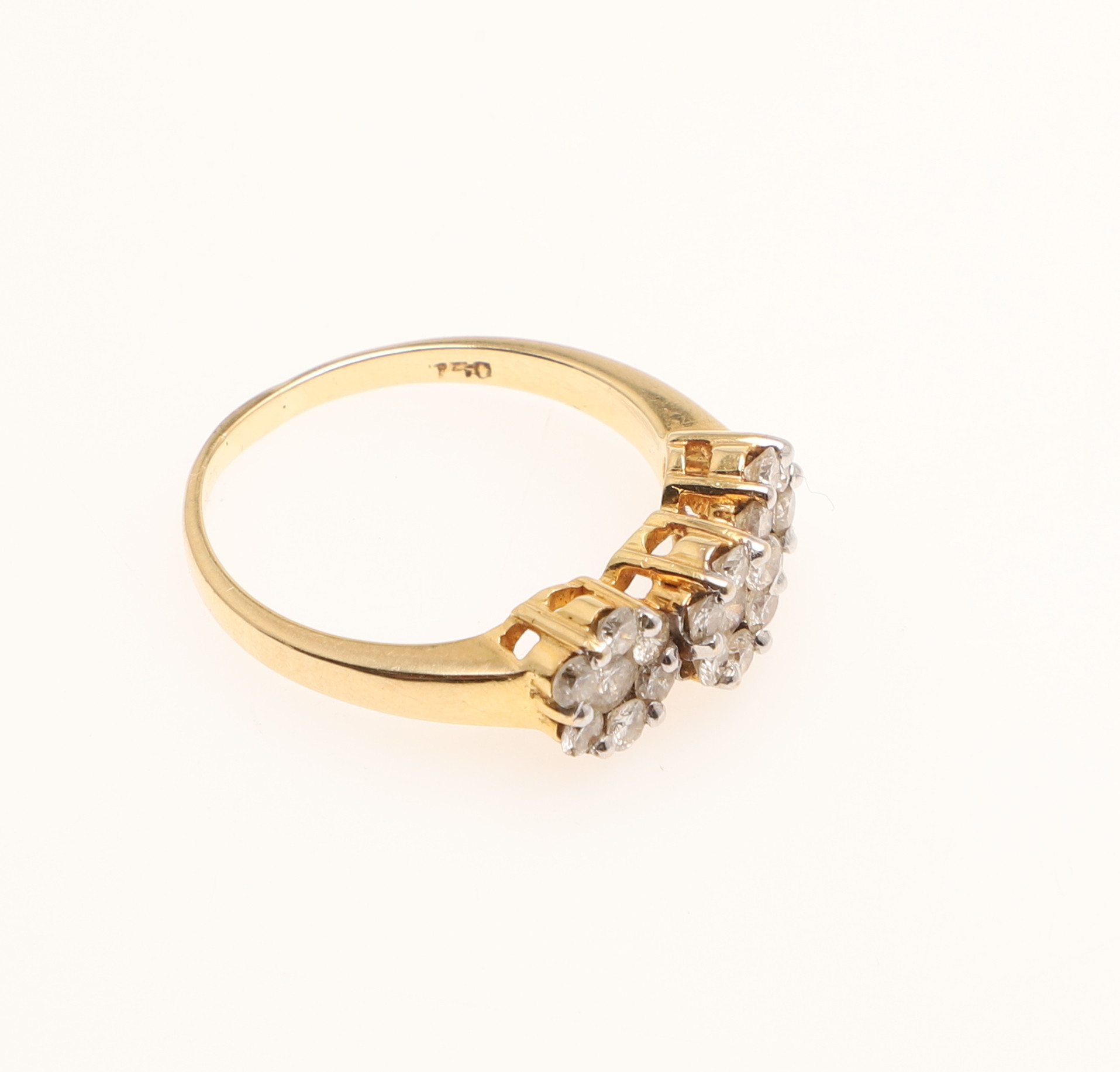 4381439. A DIAMOND TRIPLE CLUSTER RING.