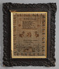 sampler has faded in colour over the years, white mark to the surface and no glass. Frame, with various losses in places.