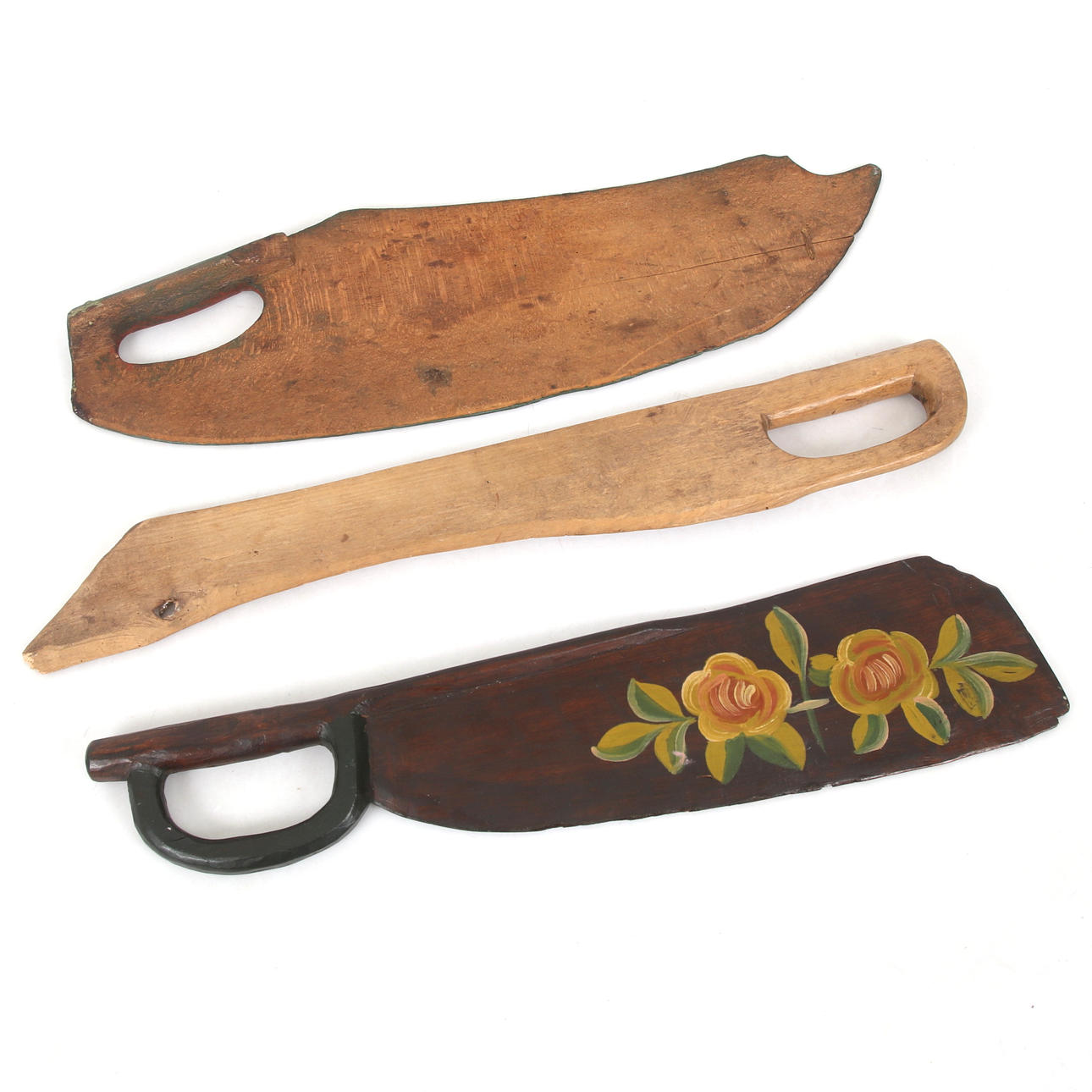 SÄKTKNIVAR 3 pcs, allmoge, dated inter alia 1727, 1867.