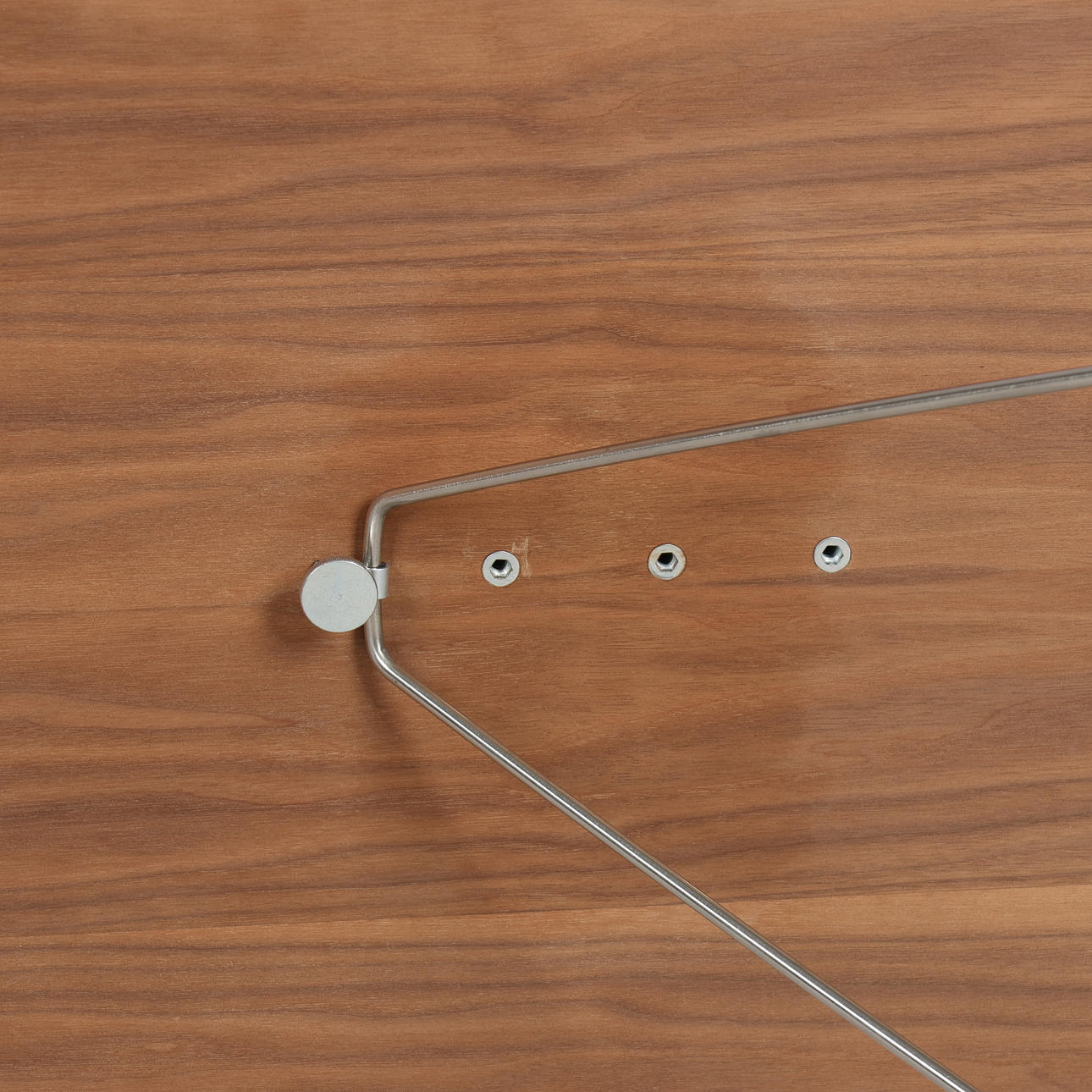 Coffee table with steel frame and walnut worktop with linoleum finish. Designed by Rasmus Kjær and manufactured at Addinterior.