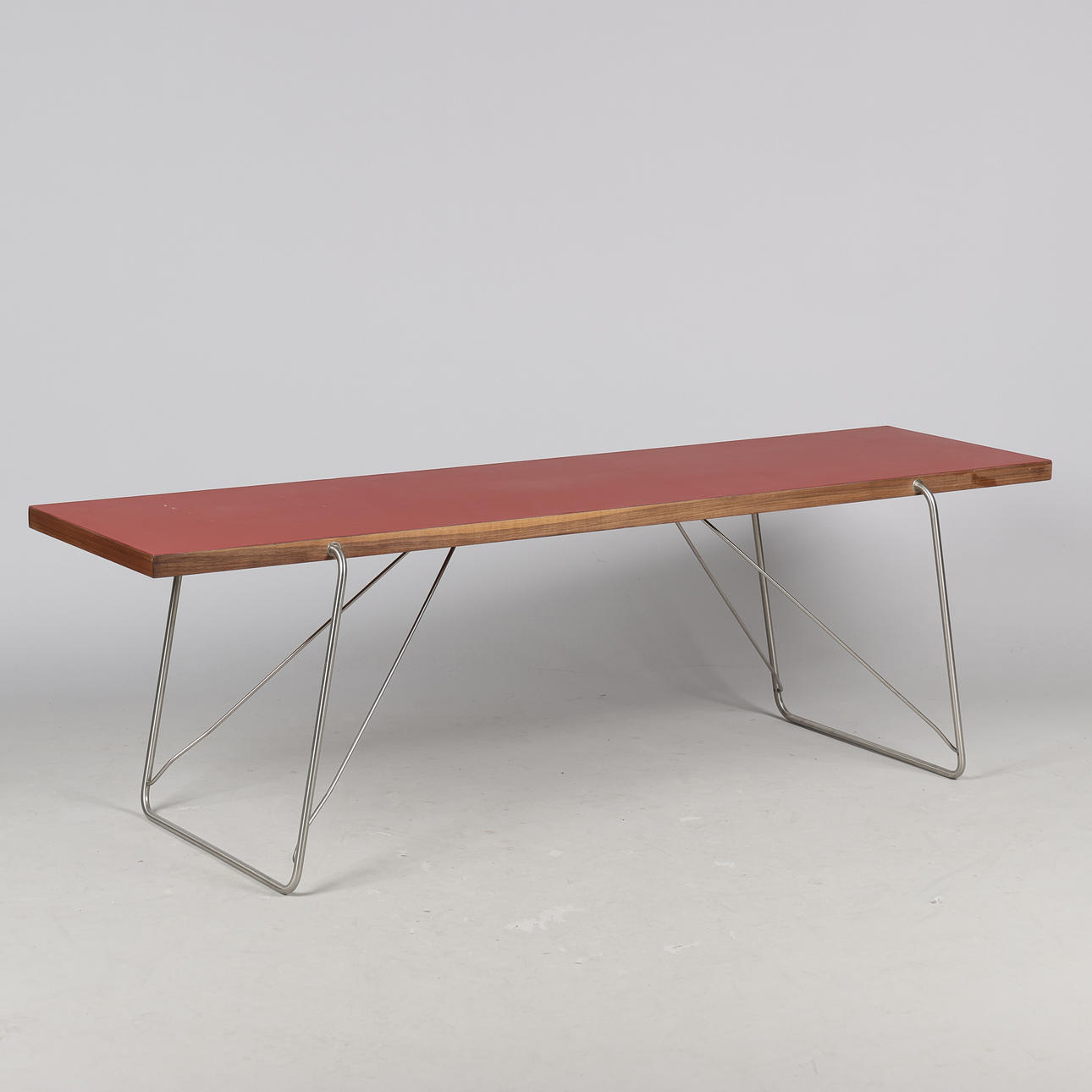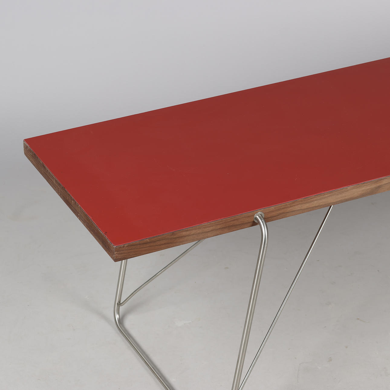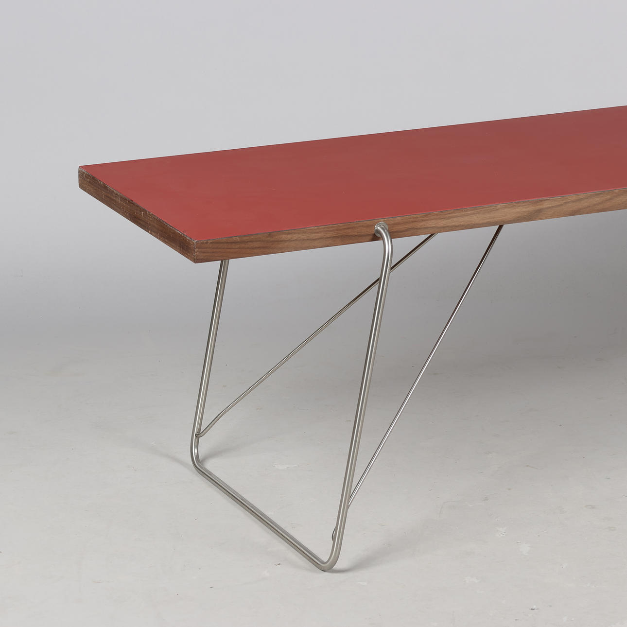4382324. RASMUS KJÆR. Coffee table with steel frame and walnut worktop with linoleum finish, Addinterior, AD-JUST, Denmark, 2010s.