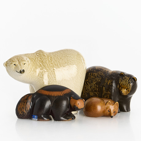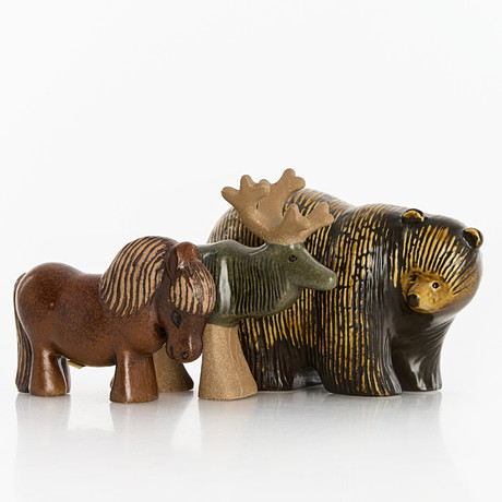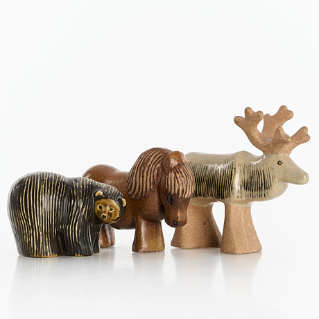 LISA LARSON. Two figurines, “Åsna” and “Väst” from the series “Stora Zoo” and “All the Children of the World” respectively, stoneware, Gustavsberg 1960/70's.