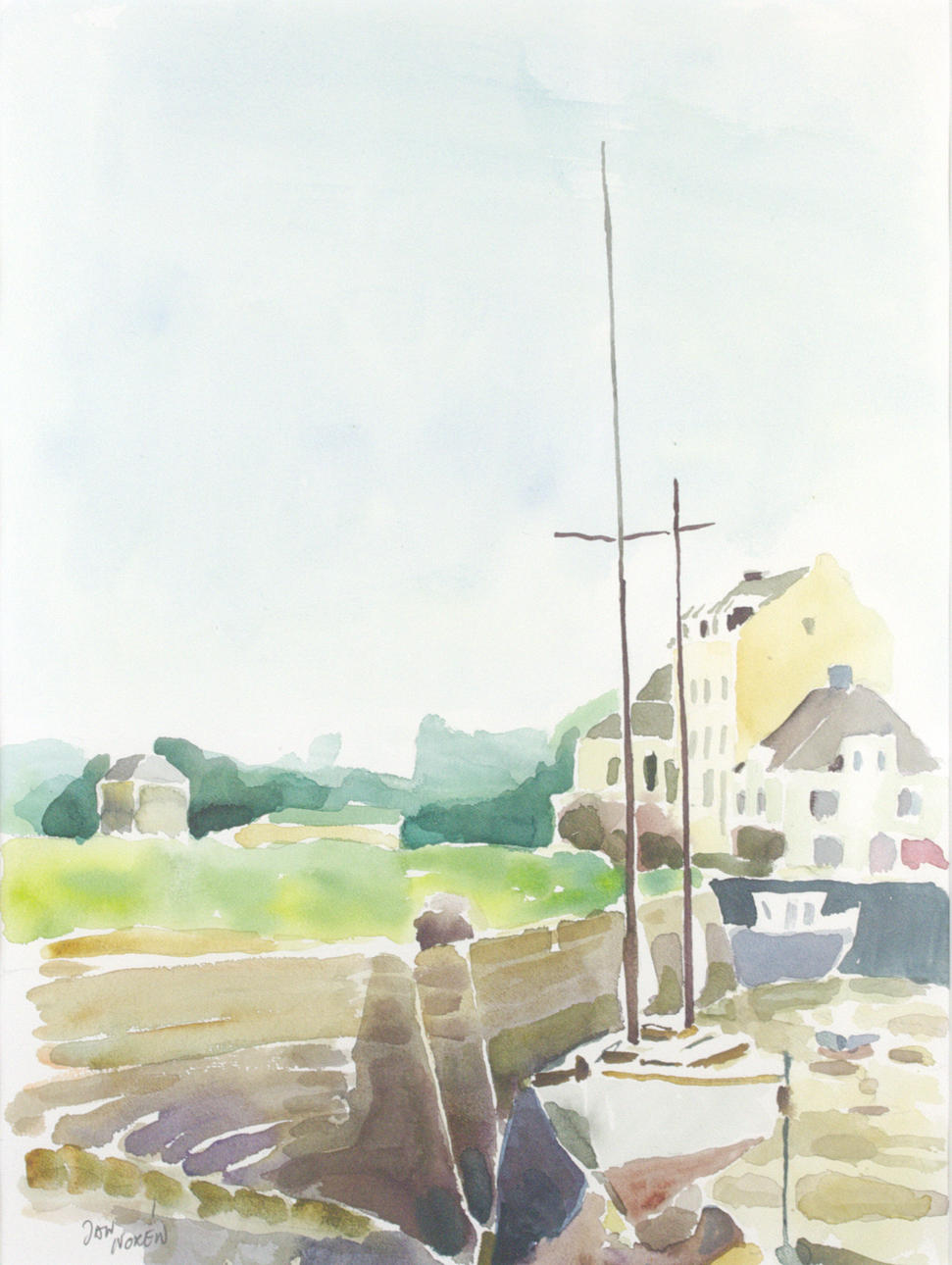 4382936. JAN NORÉN. Watercolour, “Ebb in Brittany”, signed.