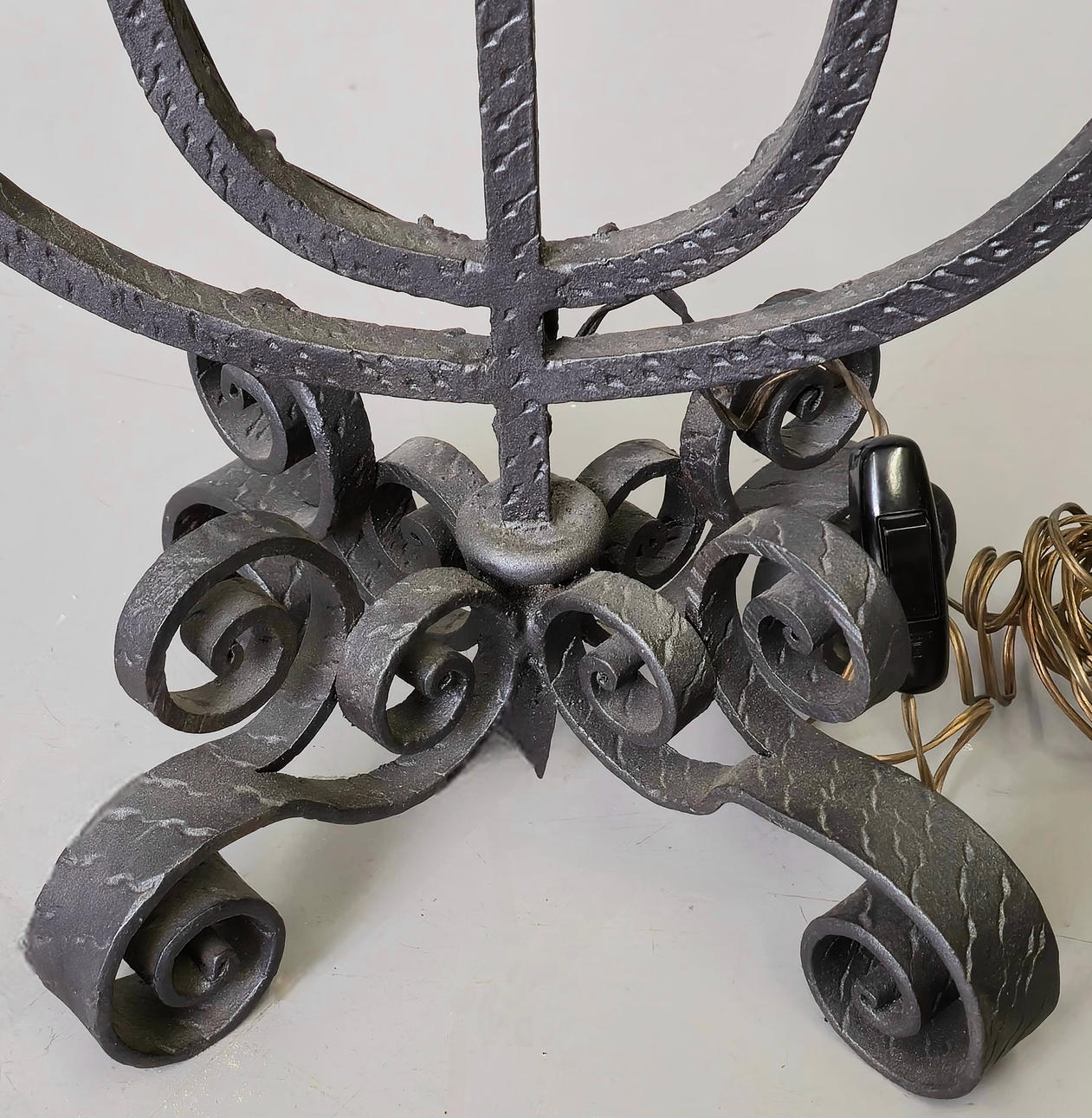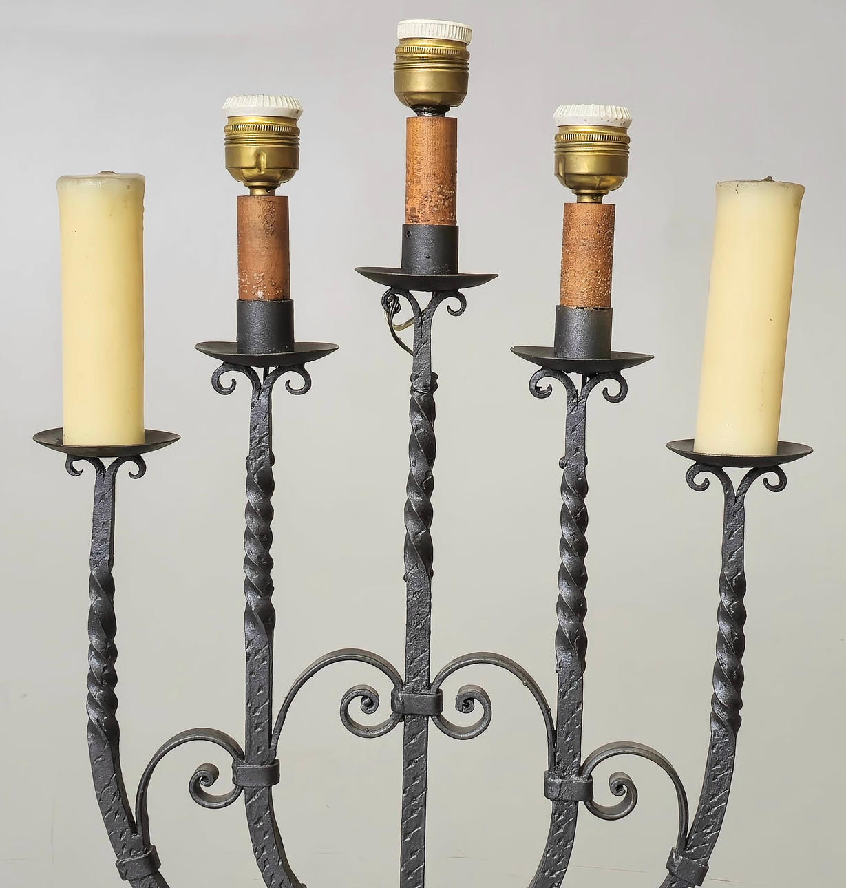 FIVE-ARMED CANDLESTICK. THREE ELECTRIFIED IN WROUGHT IRON.