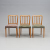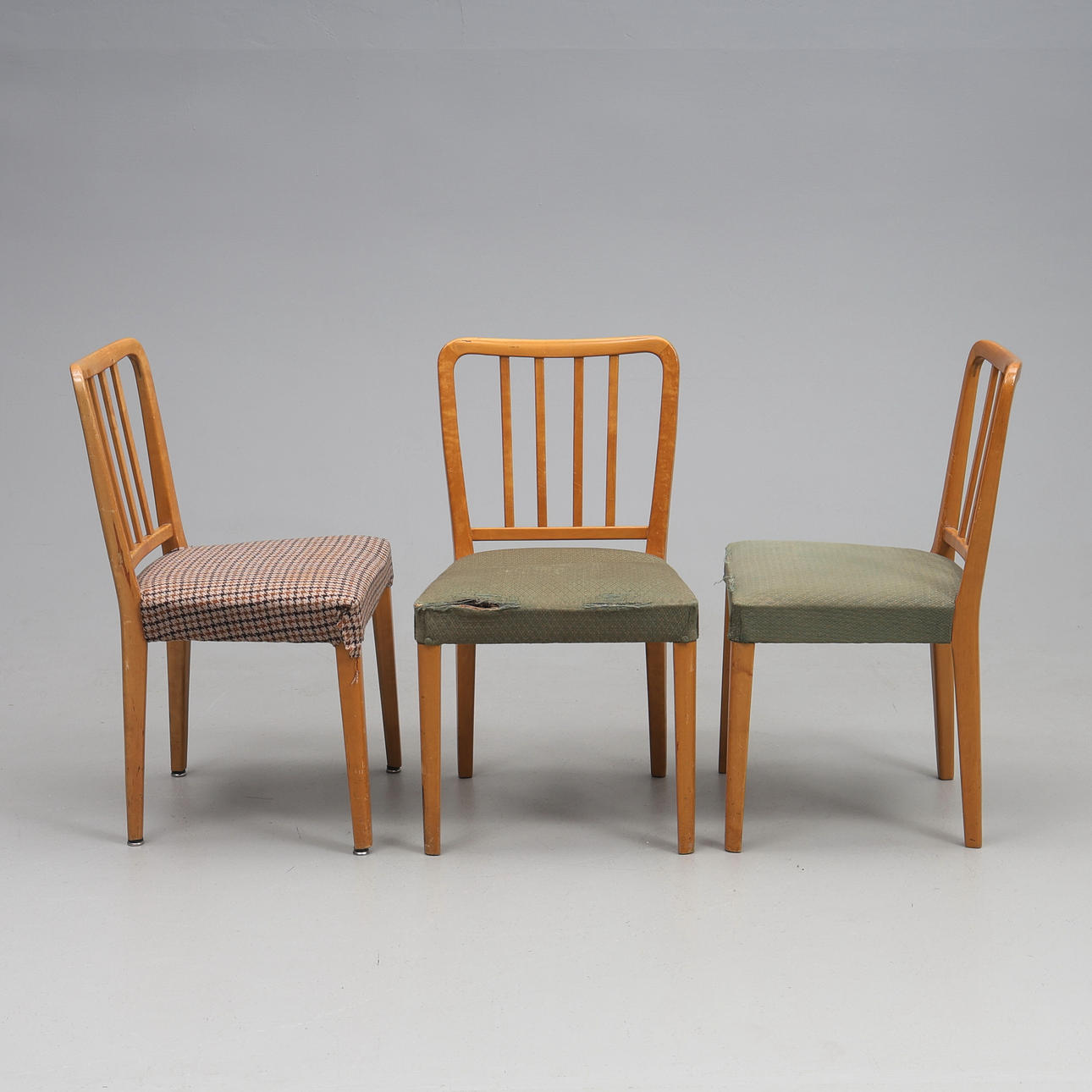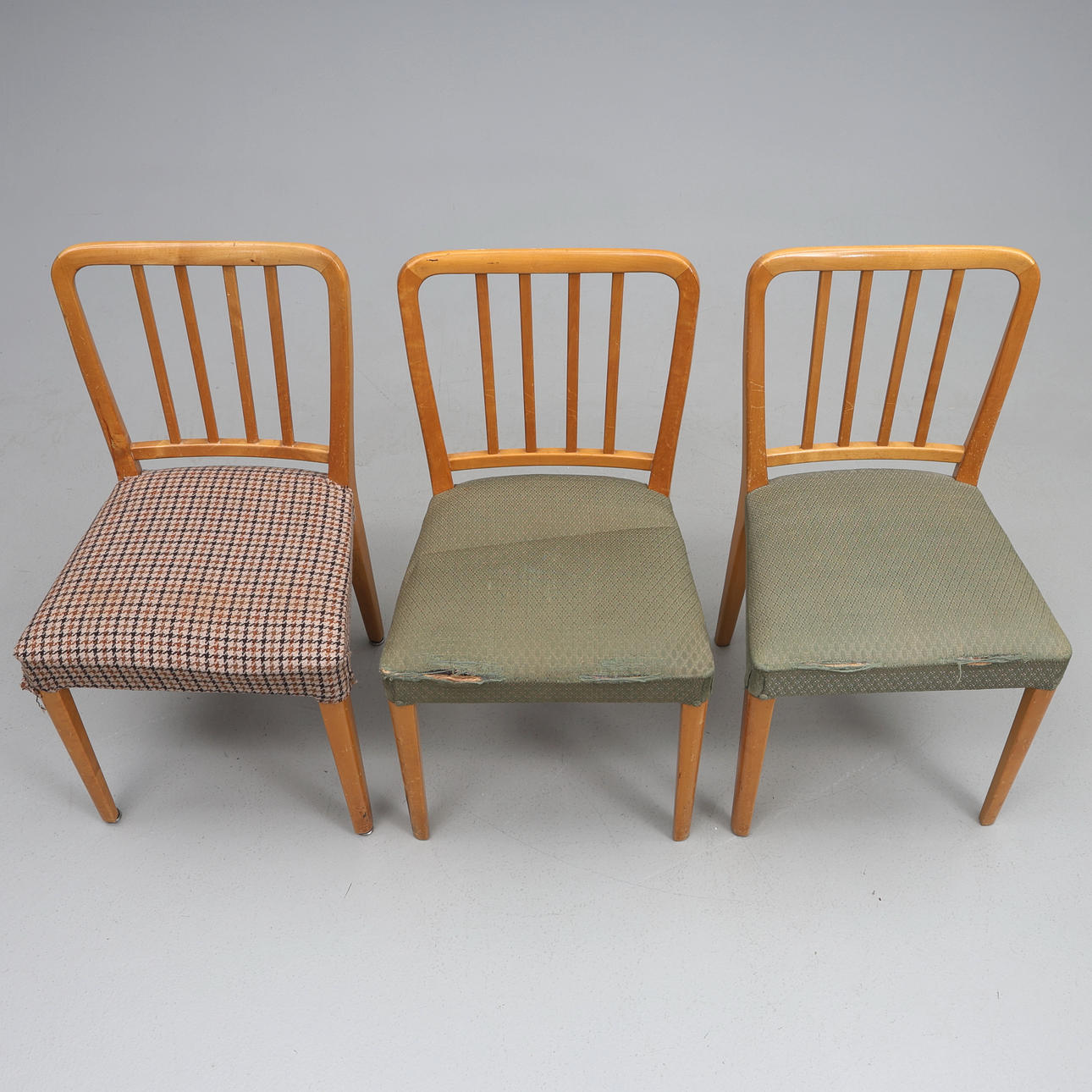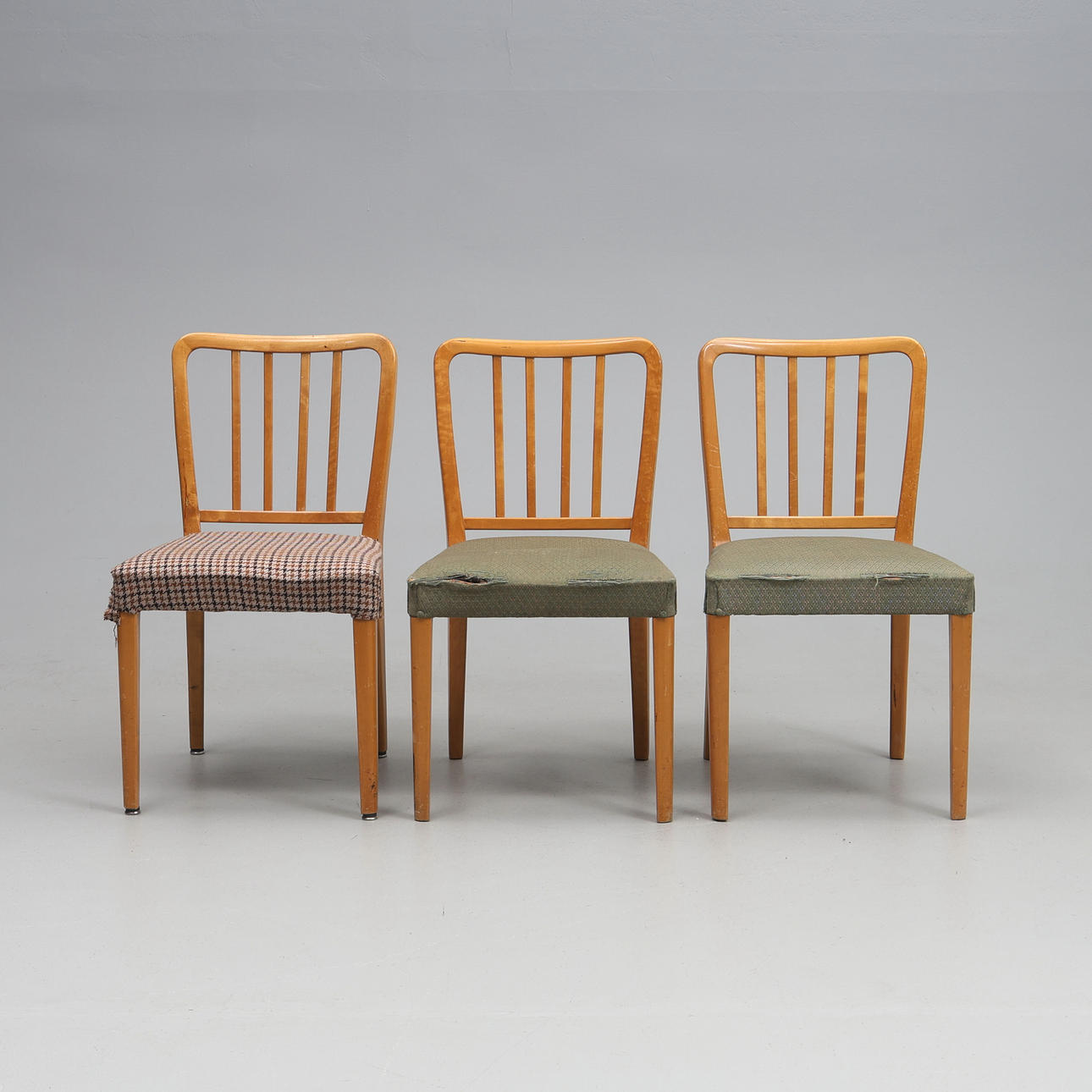 Chairs, 3 pcs, dimensions approx. 47 x 47 cm. Height approx. 82 cm. Table, diameter approx. 77 cm, height approx. 73 cm.