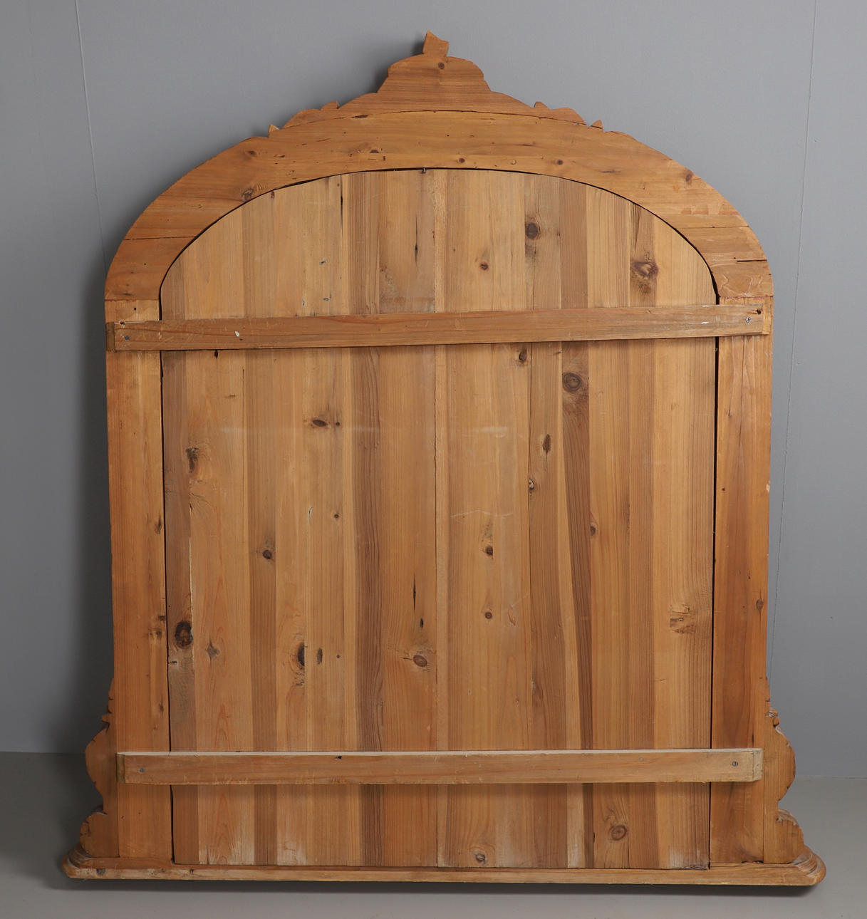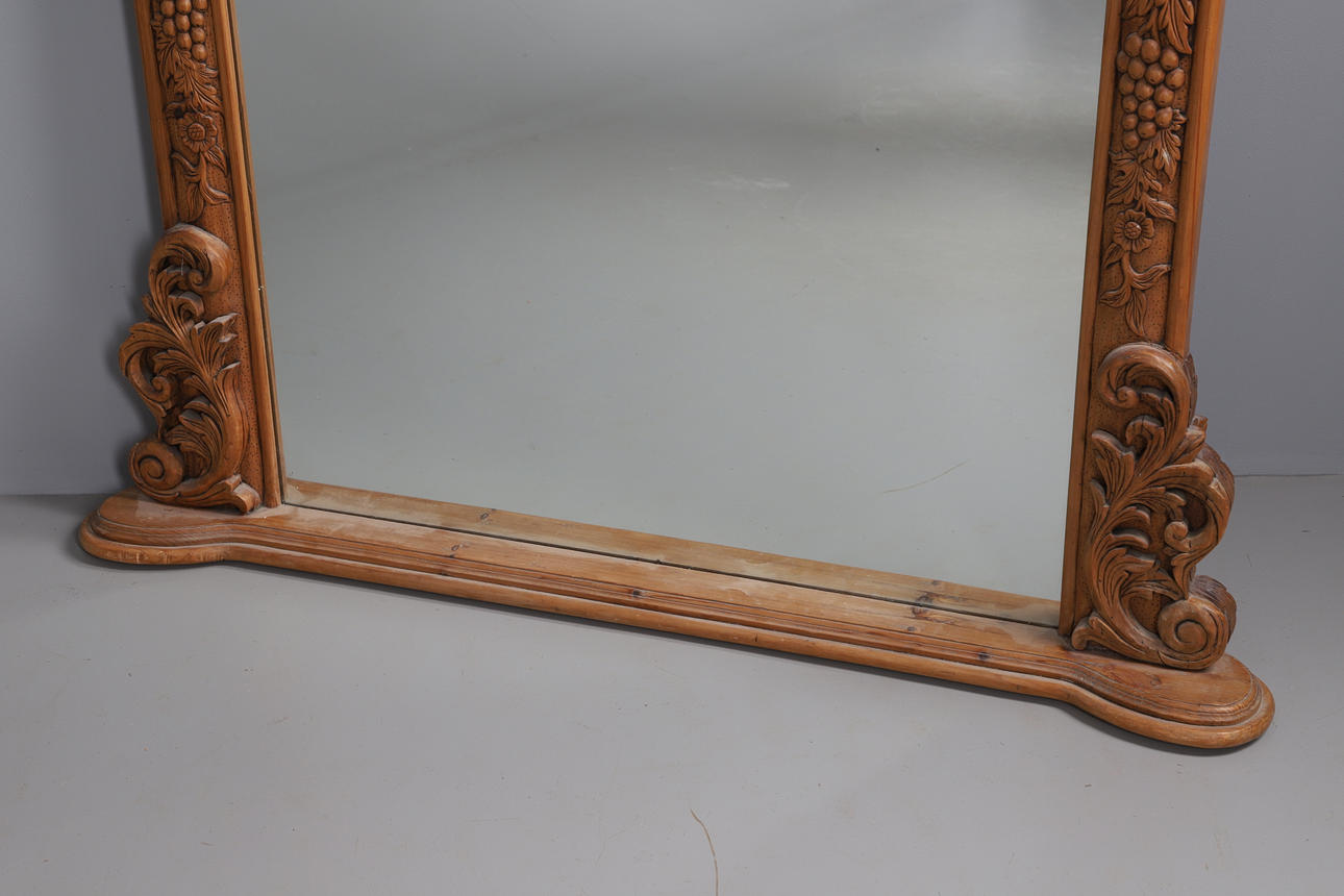 4383982. A LARGE CARVED PINE OVERMANTLE MIRROR.