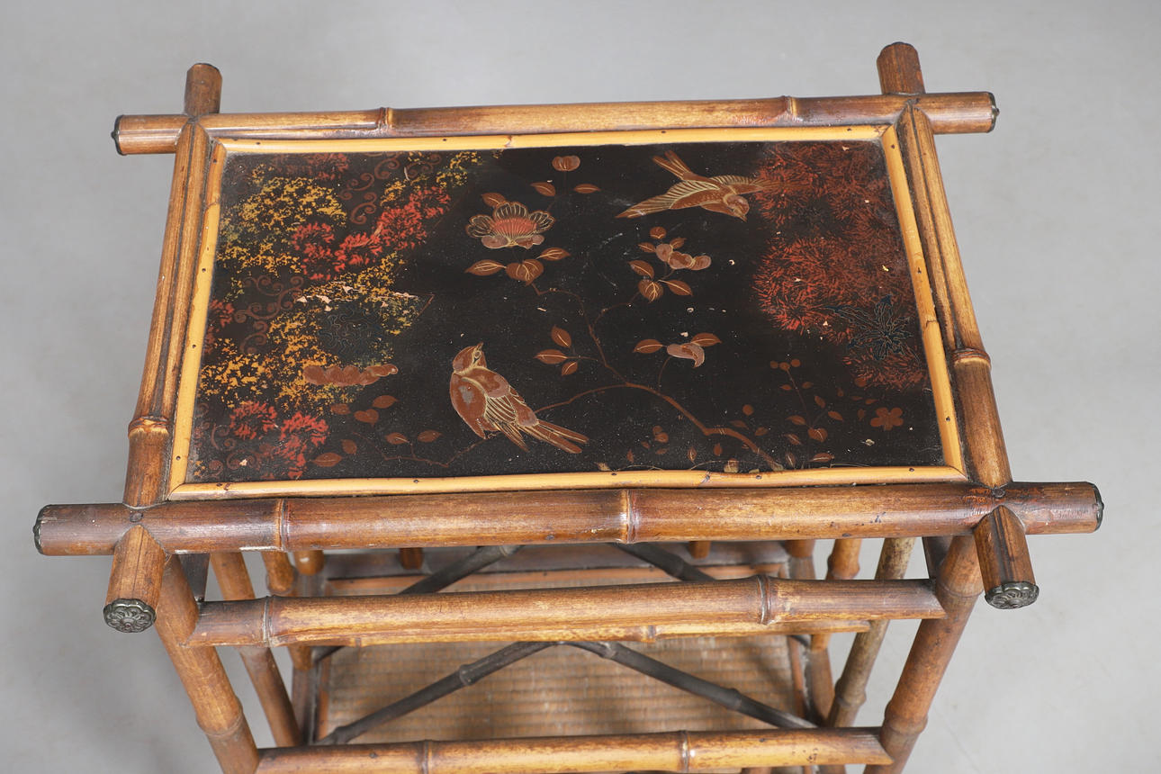 4384047. A VICTORIAN AESTHETIC BAMBOO AND LACQUERED TABLE.