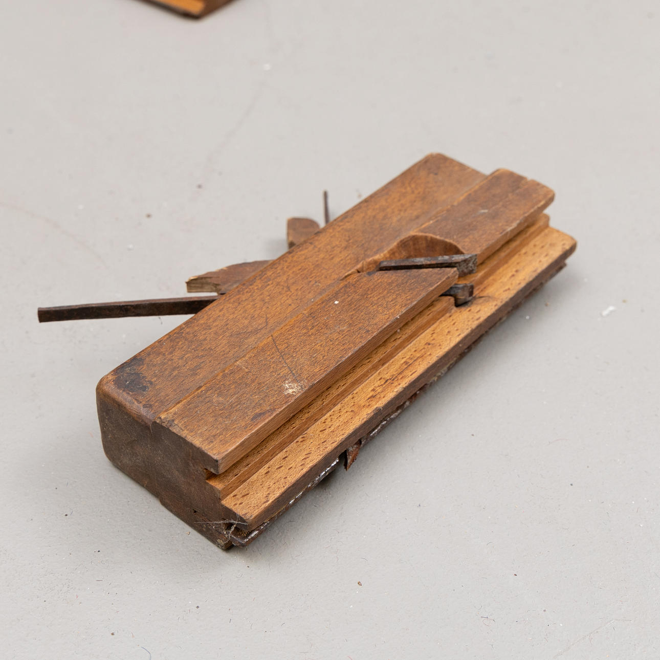 Tool box made of wood with fittings in forging. A number of tools, including rubank and several profile and profile planers.