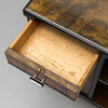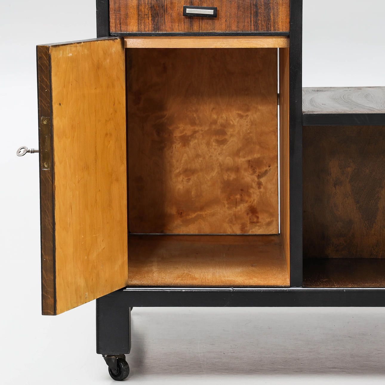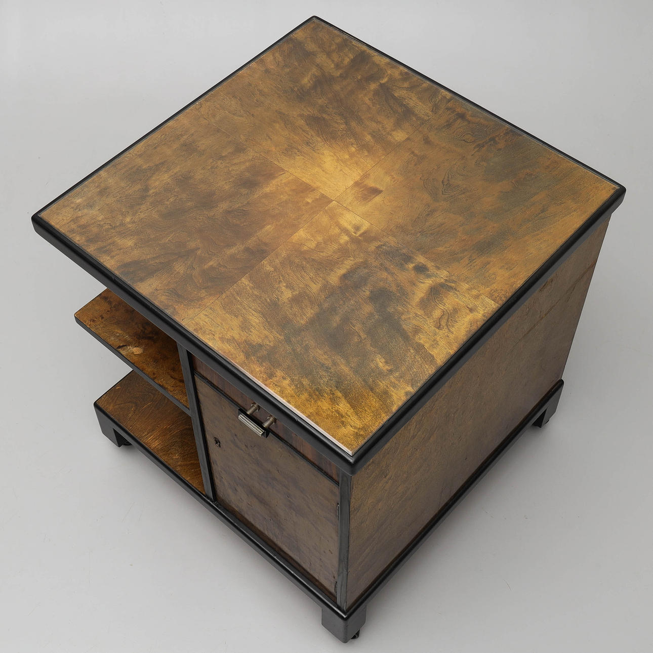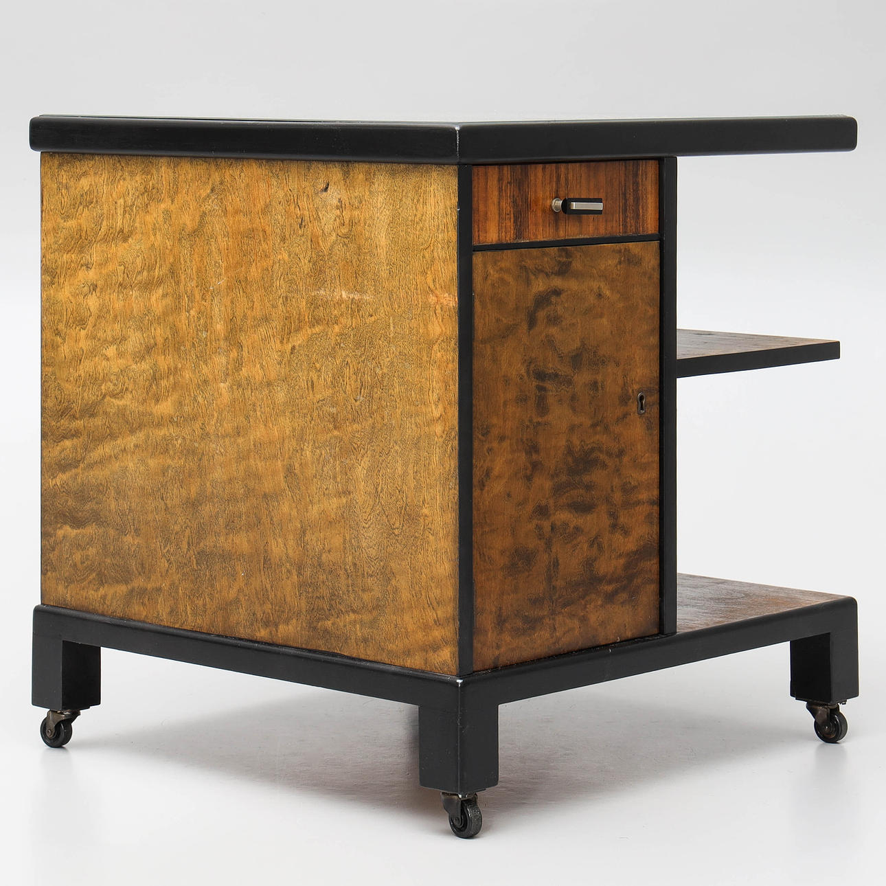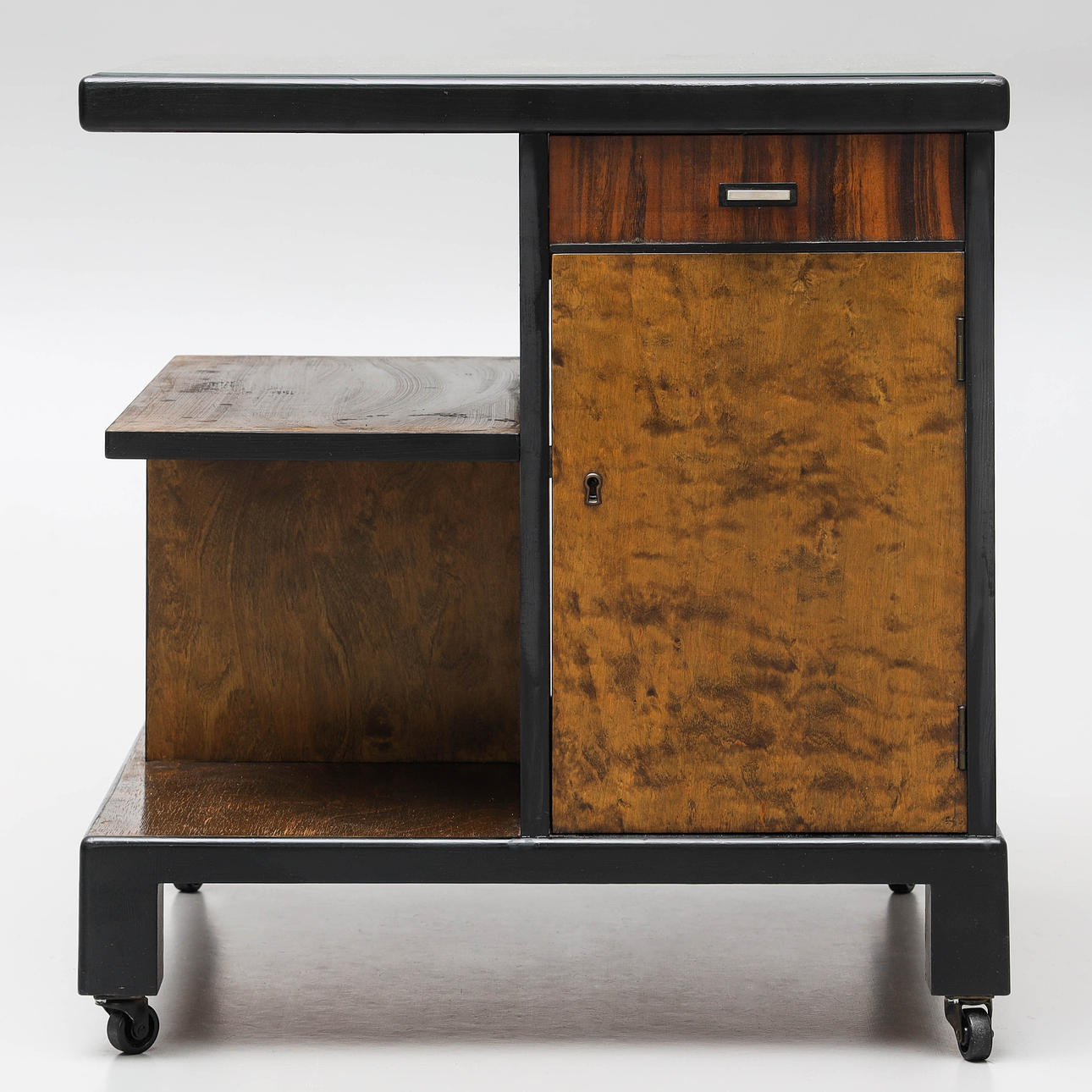 Smoking table with drawer, shelves and cupboards.