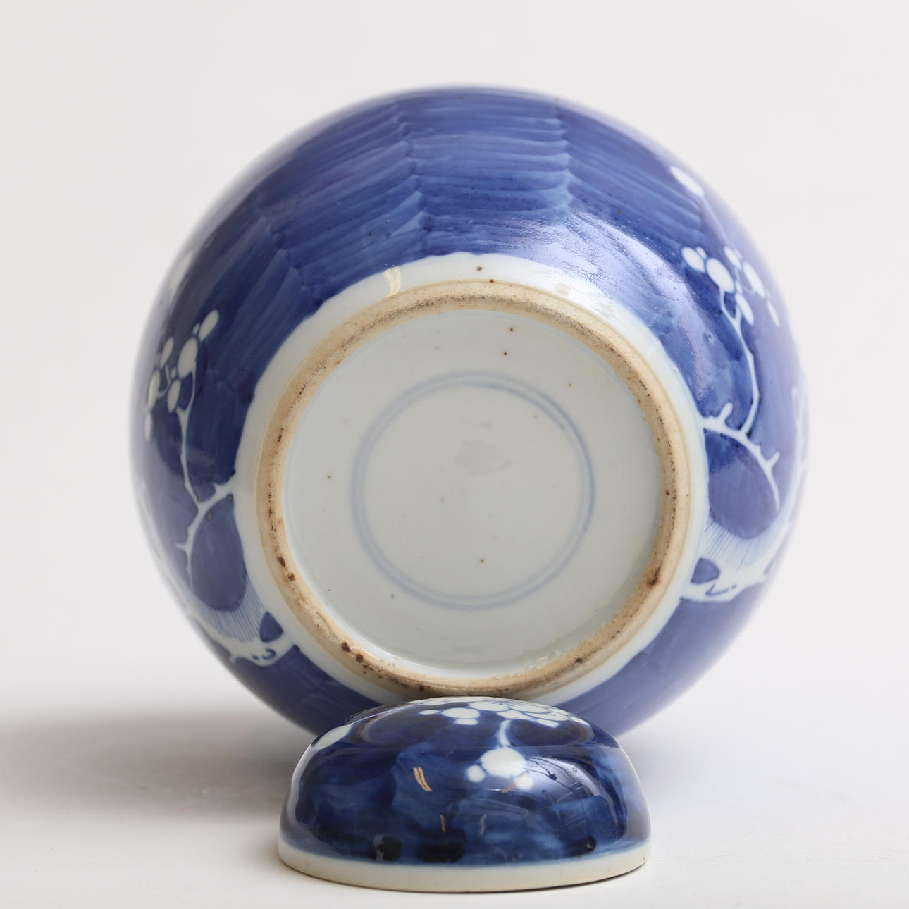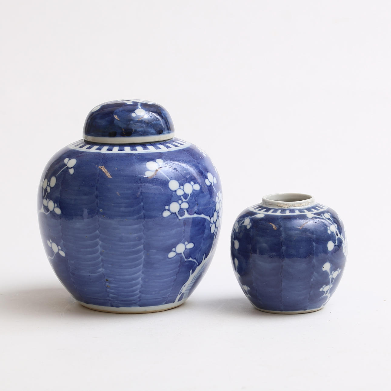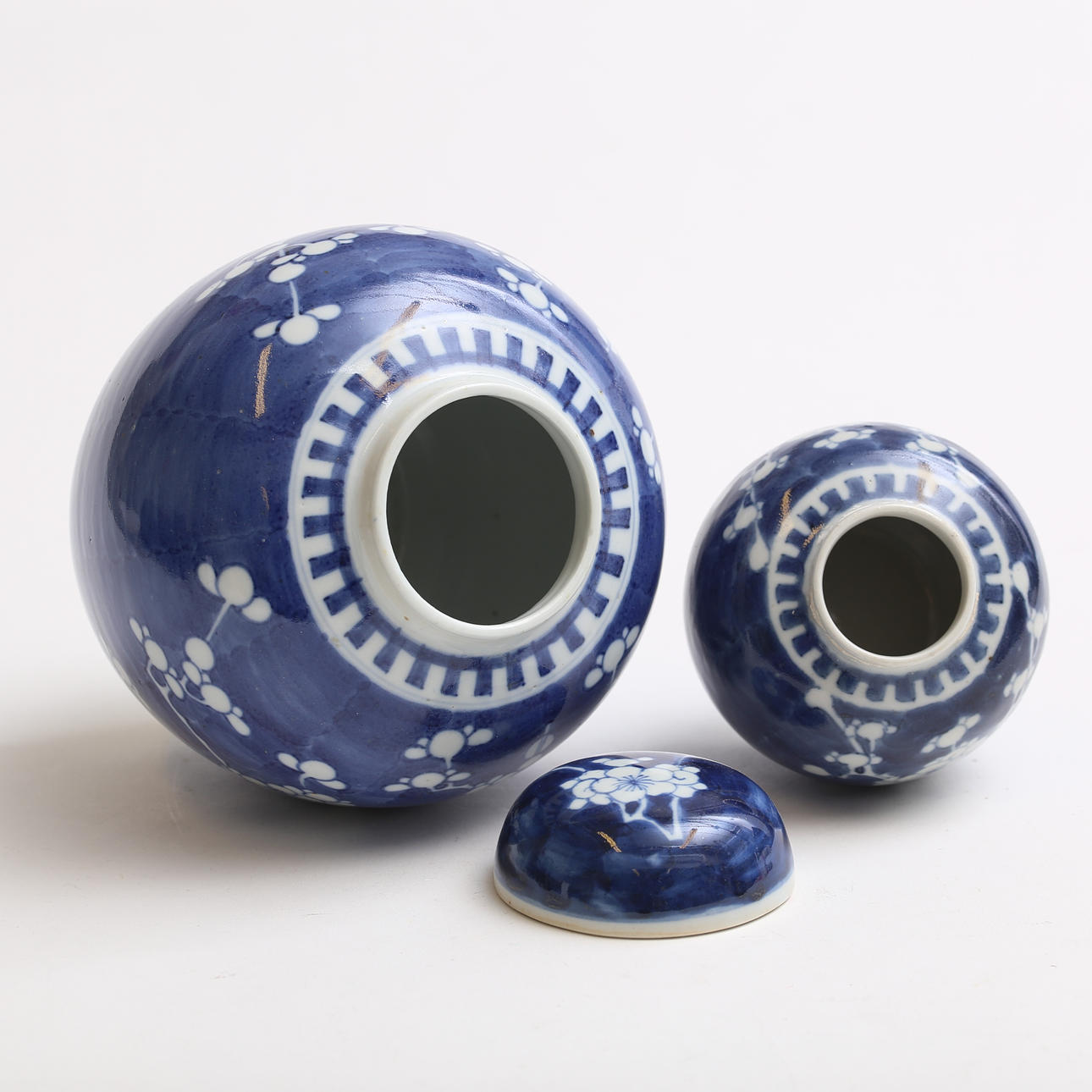 The larger one with cover, height 19.5 cm, largest diameter about 16.5 cm.