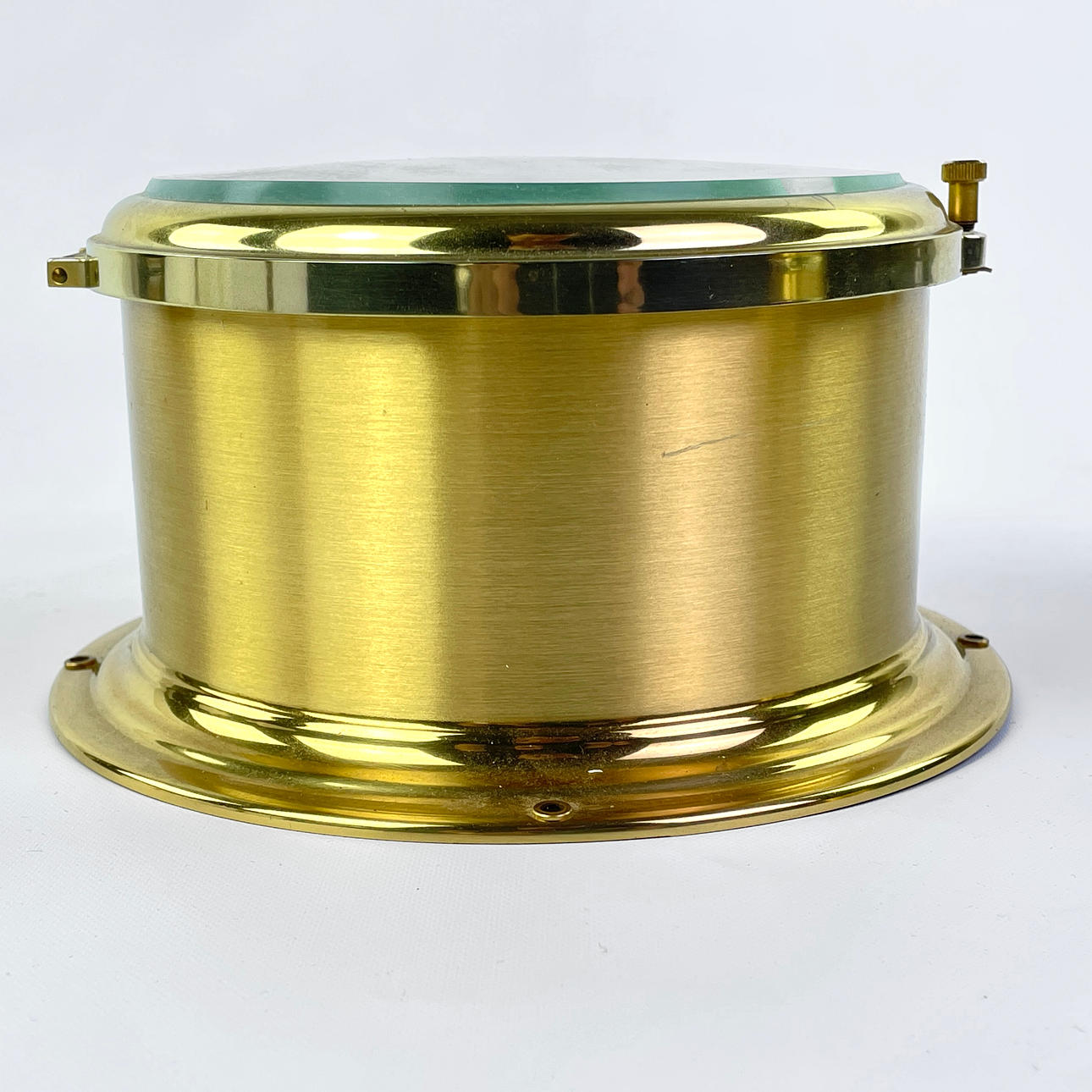 Diam about 18 cm, depth about 10 cm. Key is available. Brochure included.