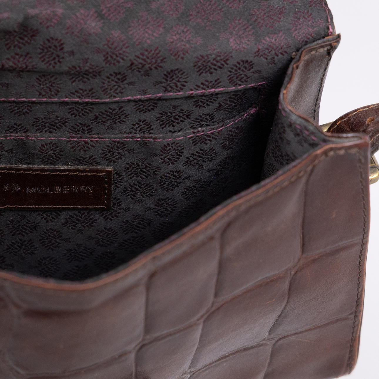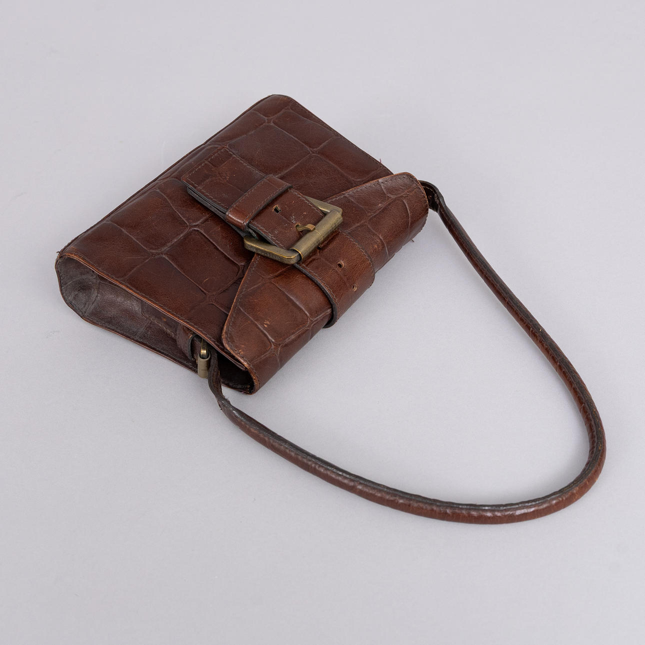 Bag in crocodile embossed leather.
