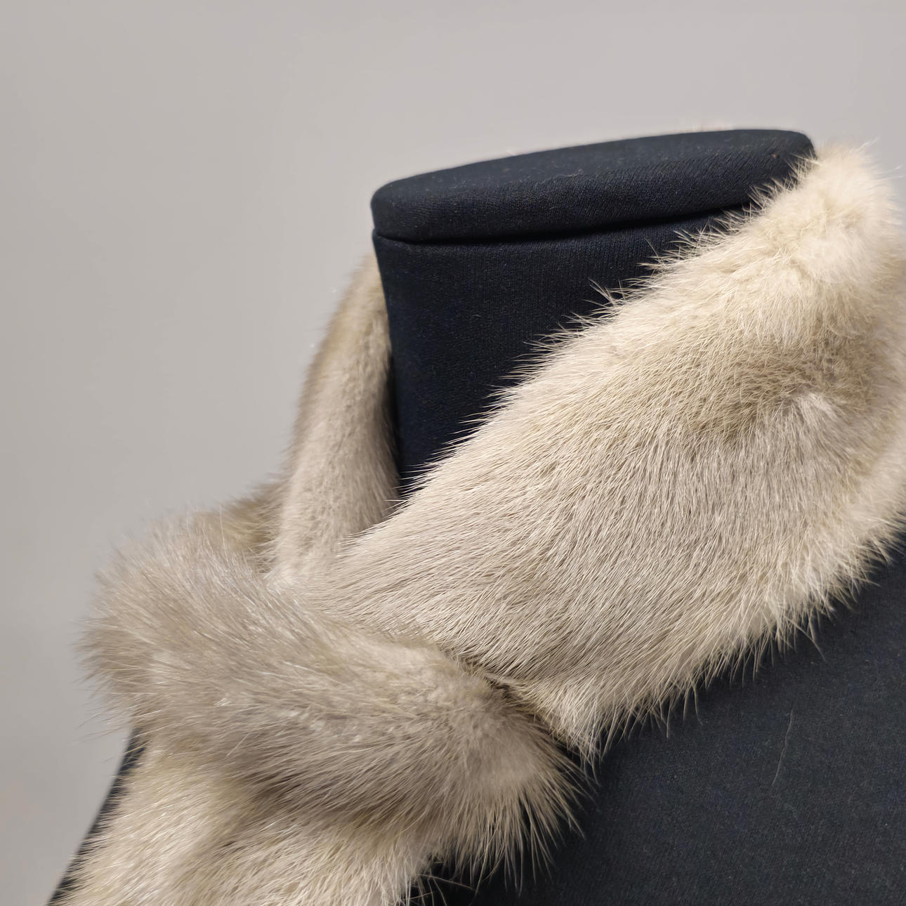 BOW-TYPE SCARF IN PEARL GRAY MINK.