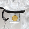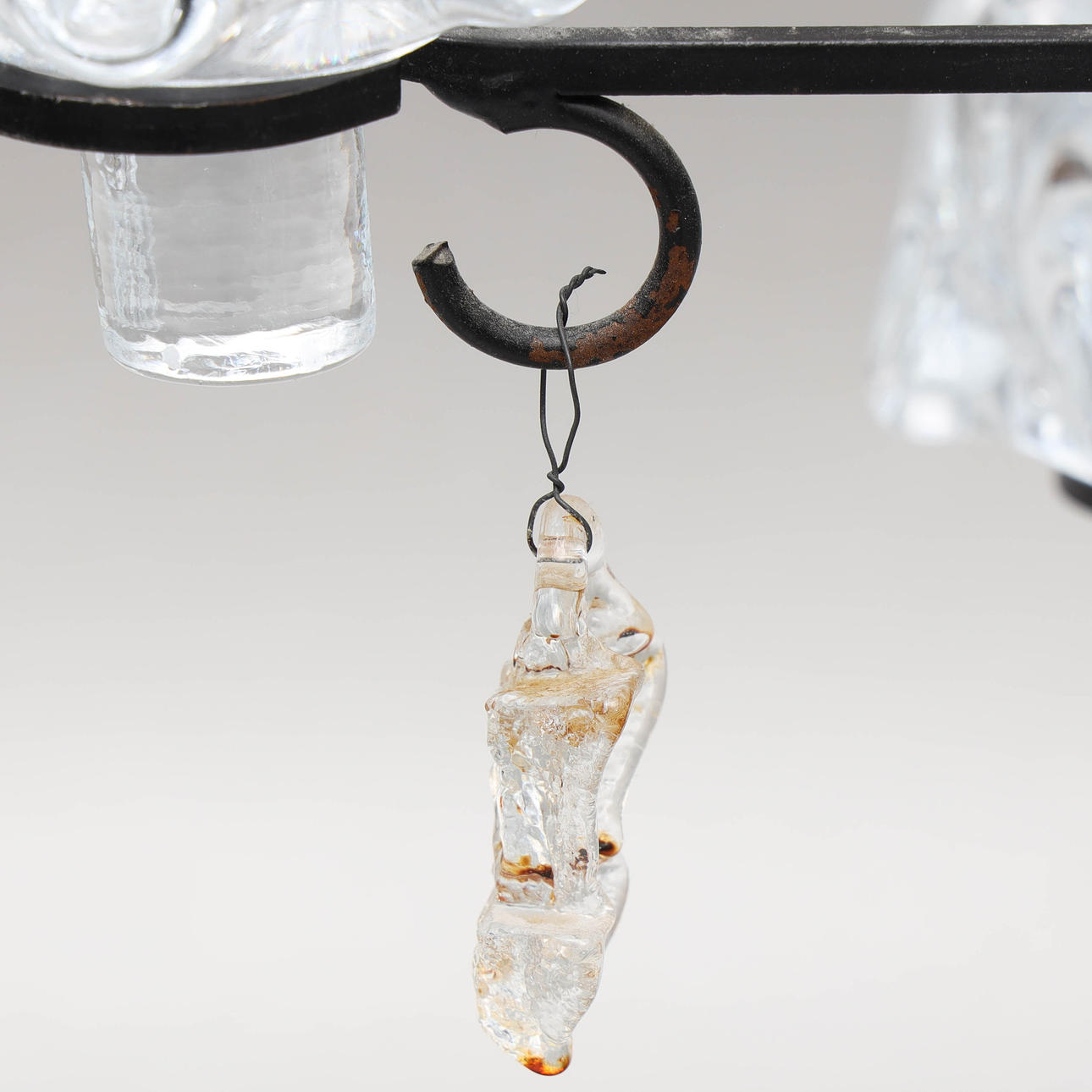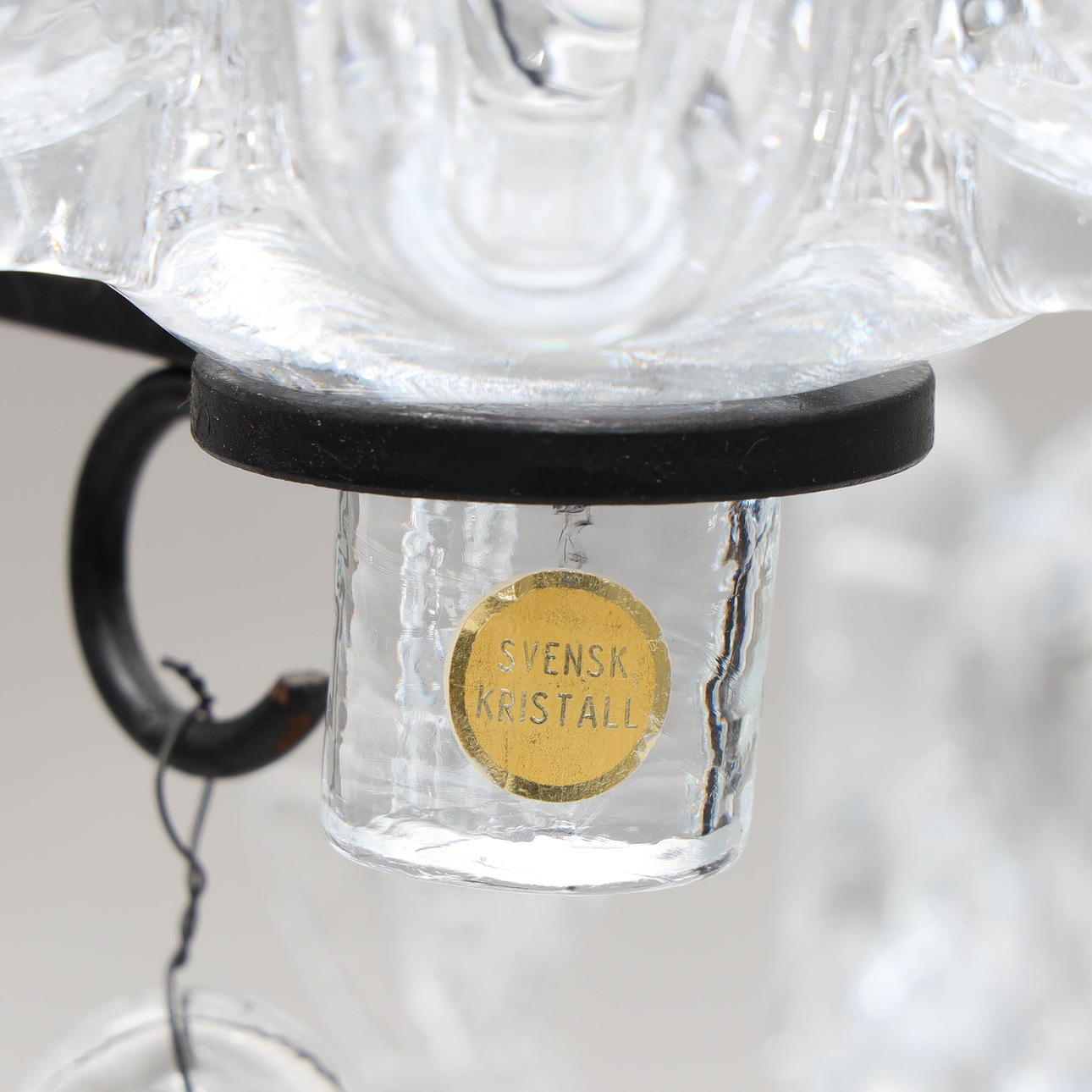 Wrought candlestick with candlesticks and glass pendants, marked Swedish crystal.
