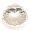 A SILVER SCALLOP SHELL DISH, SHAKER AND CHRISTENING CUP.
