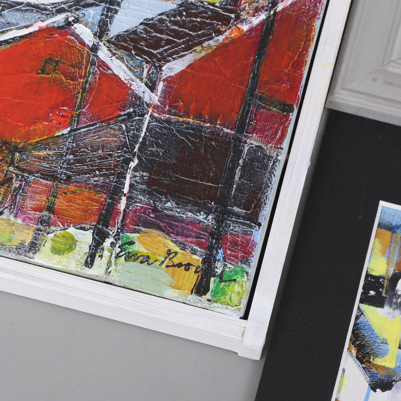 “Winter”, picture dimensions, 14 x 14 cm. “Land & Sea”, 23.5 x 33 cm Unframed in passepartout, picture dimensions, 14,5 x 21cm.