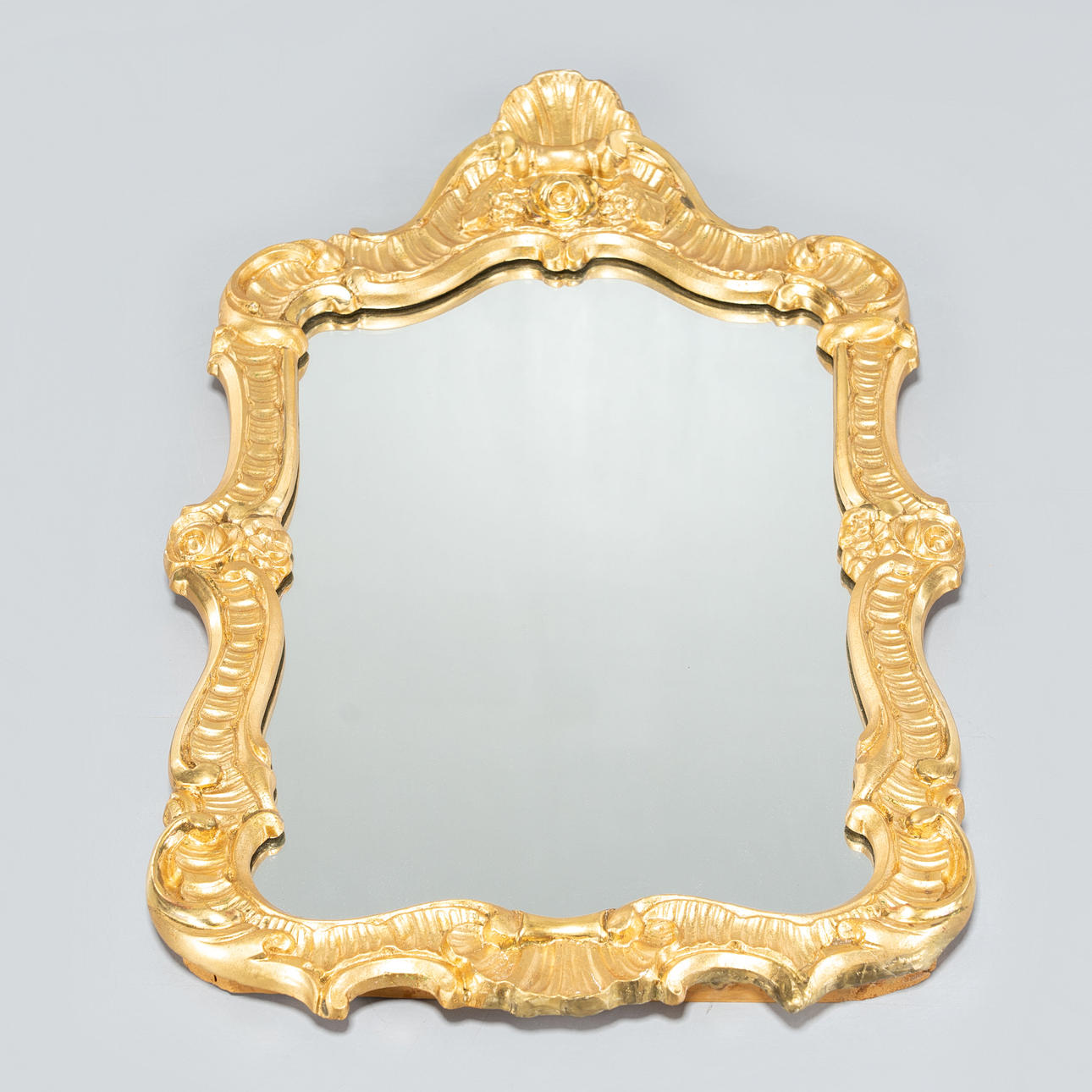 Gold-colored frame with cut and sculpted decor of bla rocaille and roses