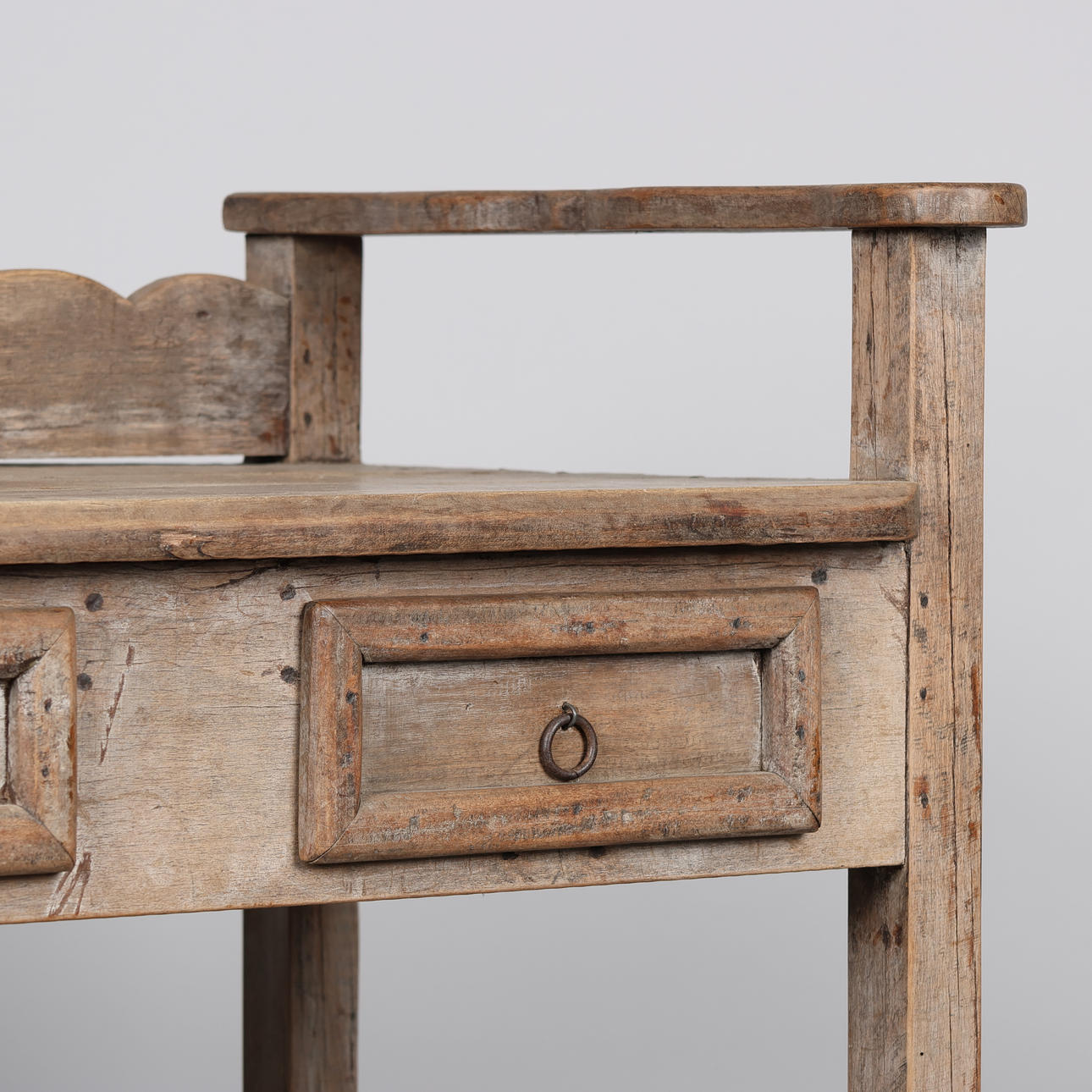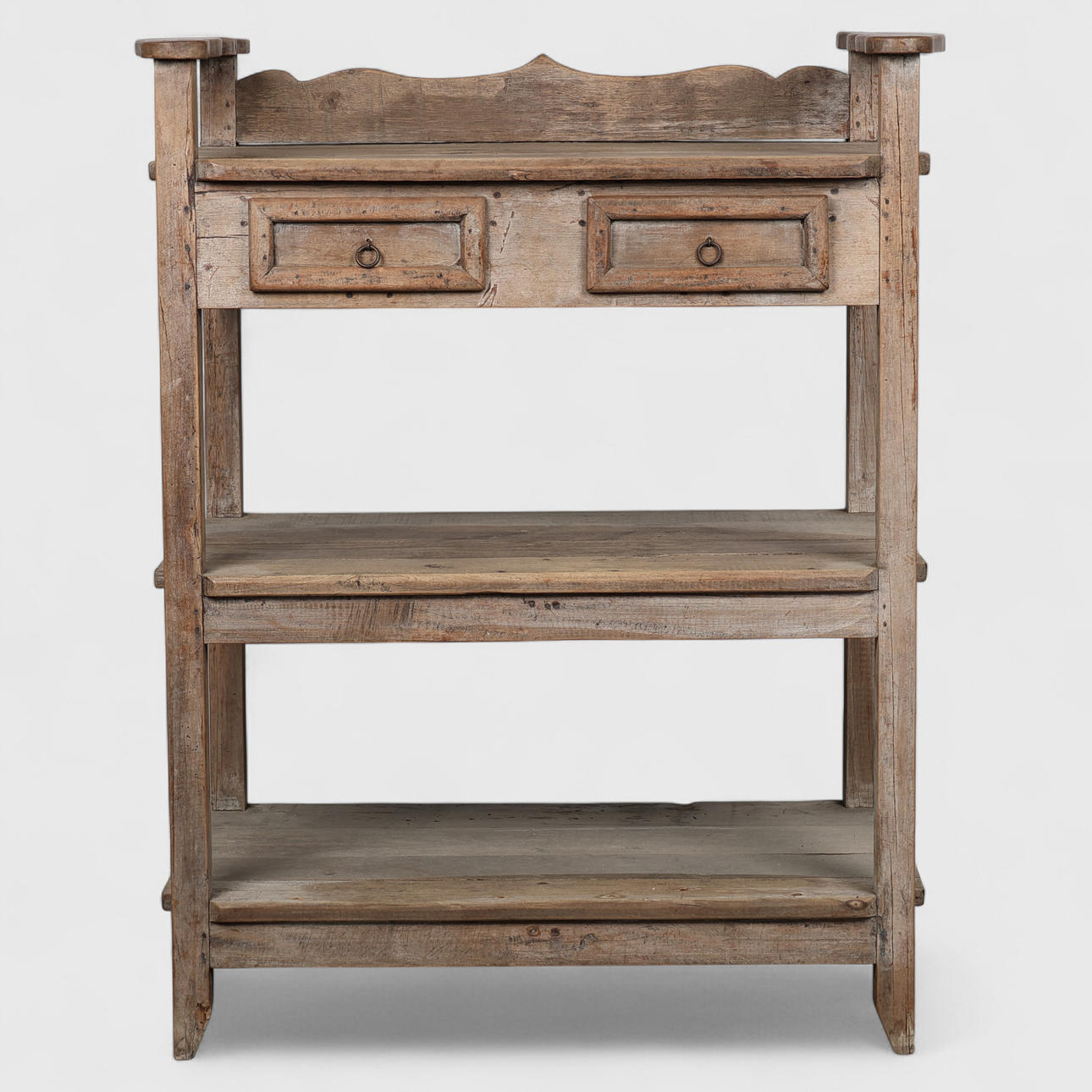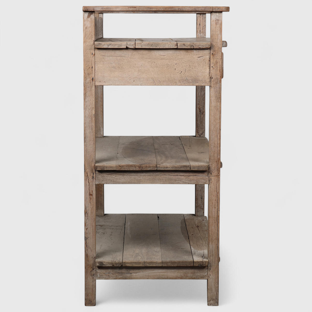 Rustic table/plant table made of elm wood with three shelves and two drawers. H.107 x 87 x 51cm. The second half of the 1900's.