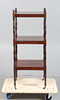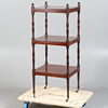 Having three tiers raised on turned baluster columns, 114cm tall, 41.5cm deep.