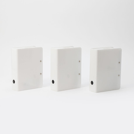 with board in melange laminate with blind box front in corners with yellow metal fittings on four-pass feet. Height approx. 69 cm, 63 x 63 cm.