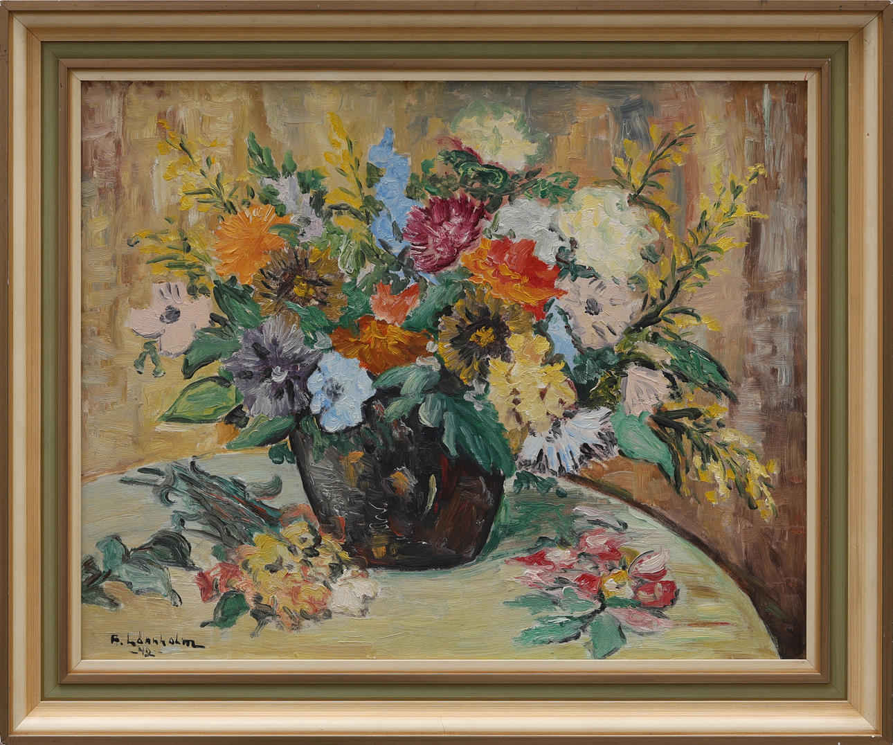 4387161. OIDENTIFIERAD KONSTNÄR. oil on panel, flower still life, signed, dated -42.