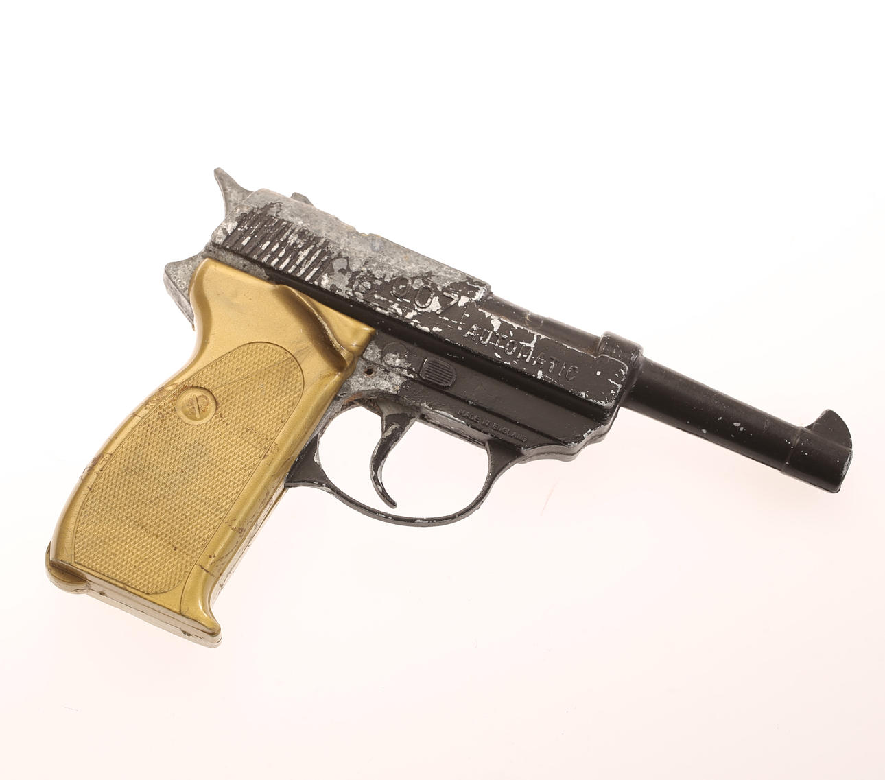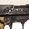 Normal wear and tear. Hole after stapler in poster. Pistol with injuries.