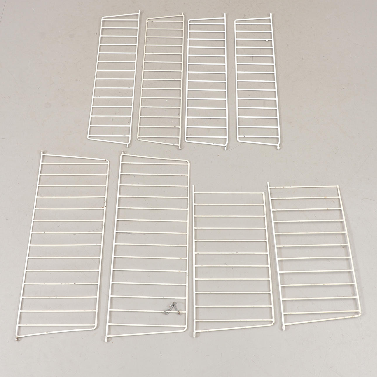 WALL SHELVES, 18 pieces, string model, 1950s.