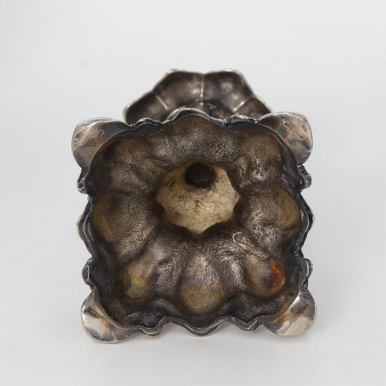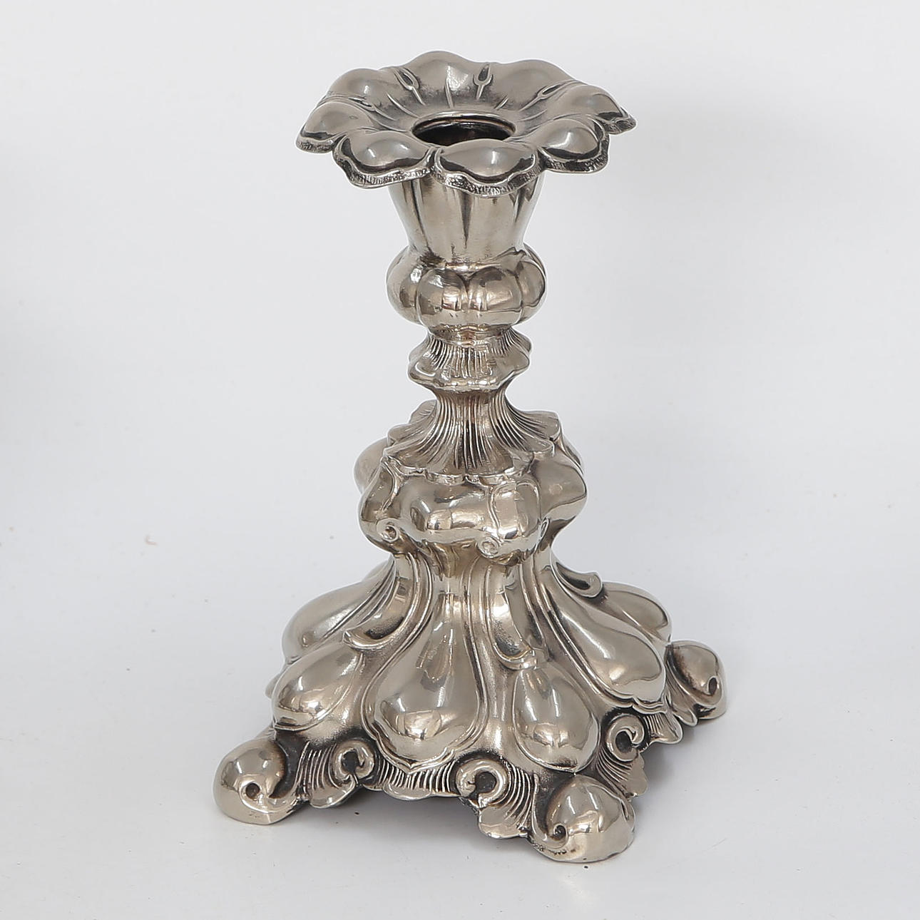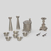 4387370. 12 NICKEL SILVER AS WELL AS TIN OBJECTS, CANDLESTICKS, STOPS, ETC.