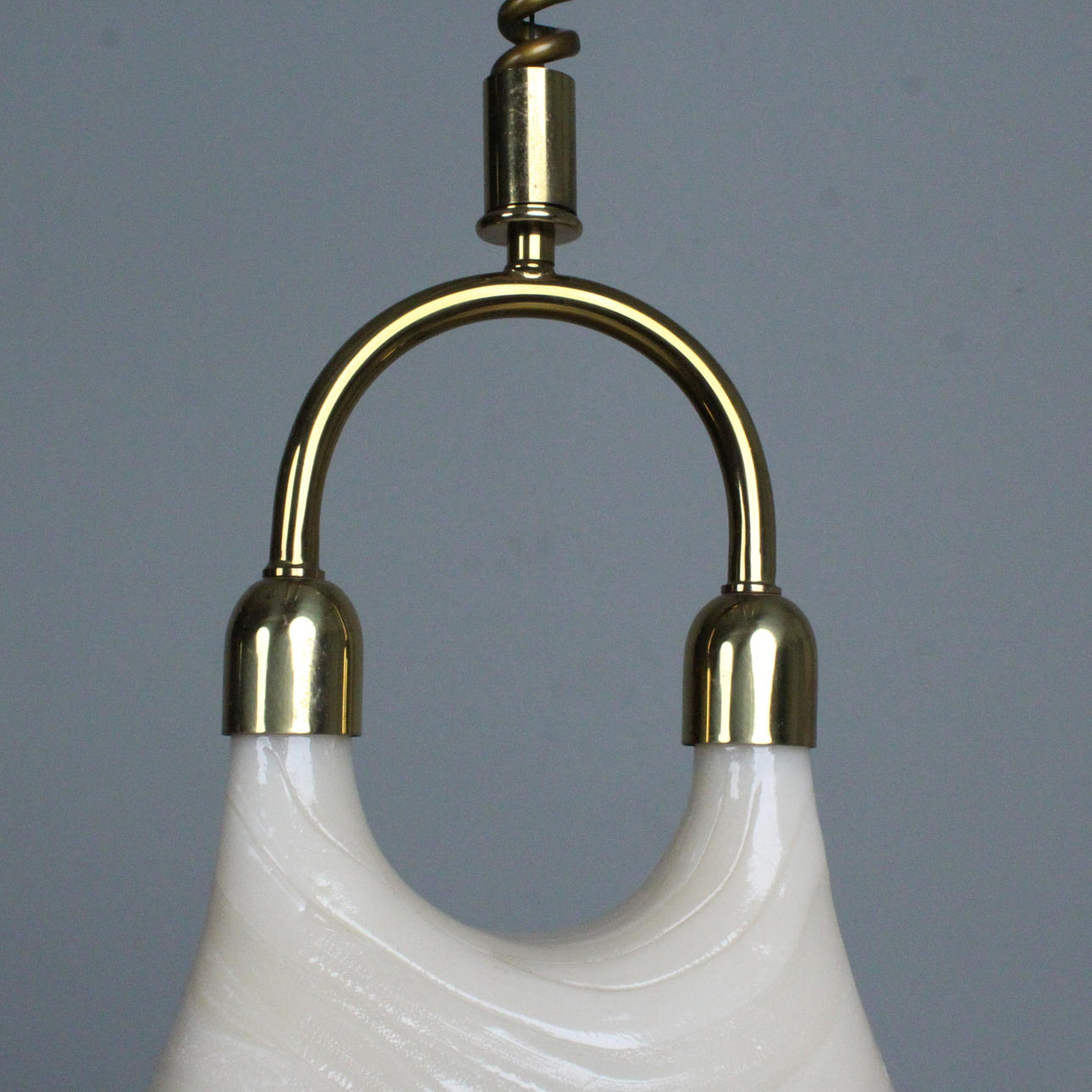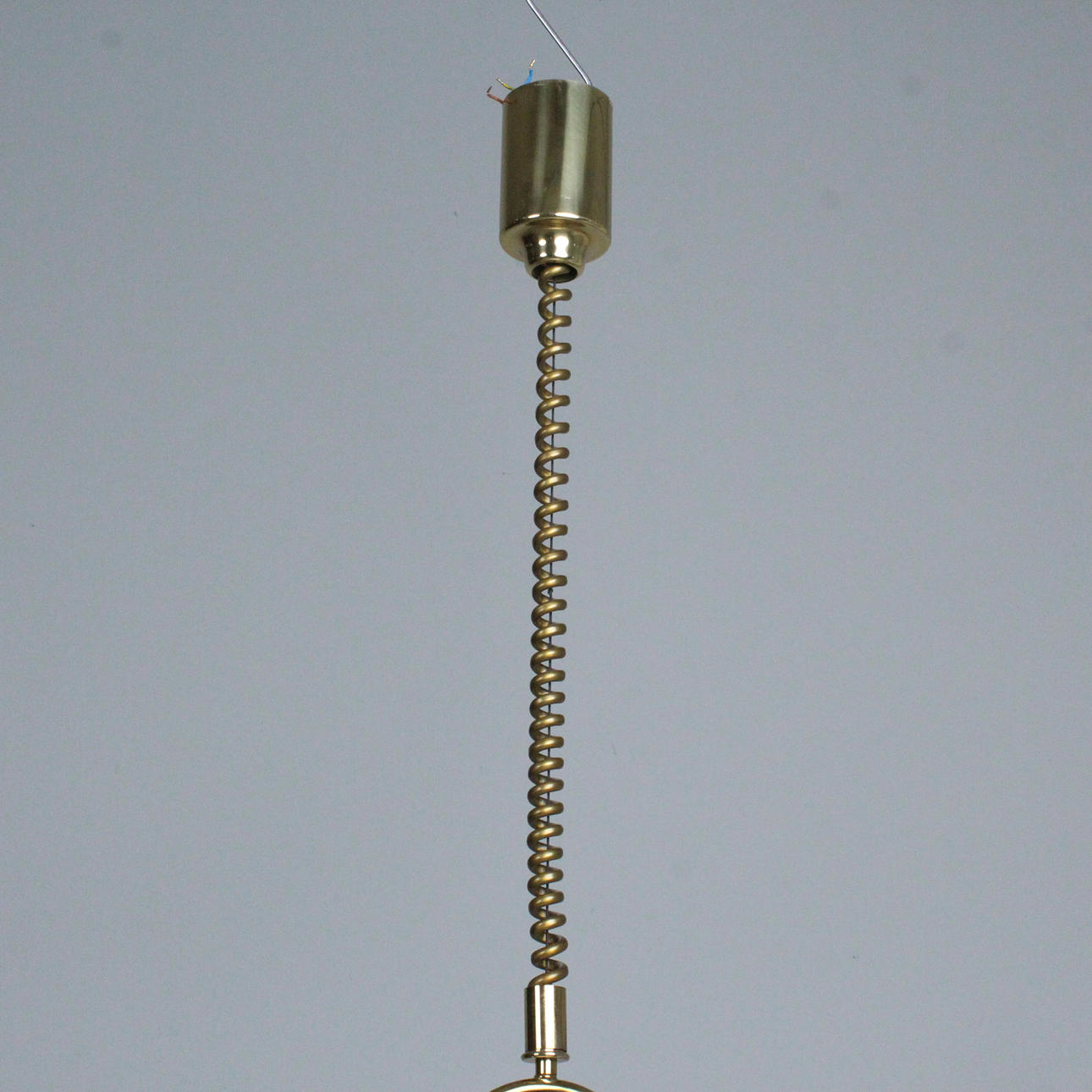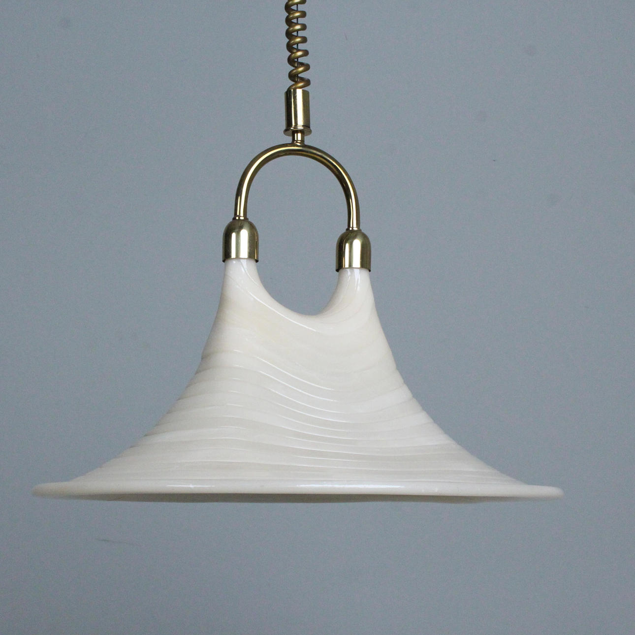 Cosack, hanging lamp/ pendant lamp, 1970s, brass, lampshade made from a fibre-lucite mix, height-adjustable, equipped with two burners,