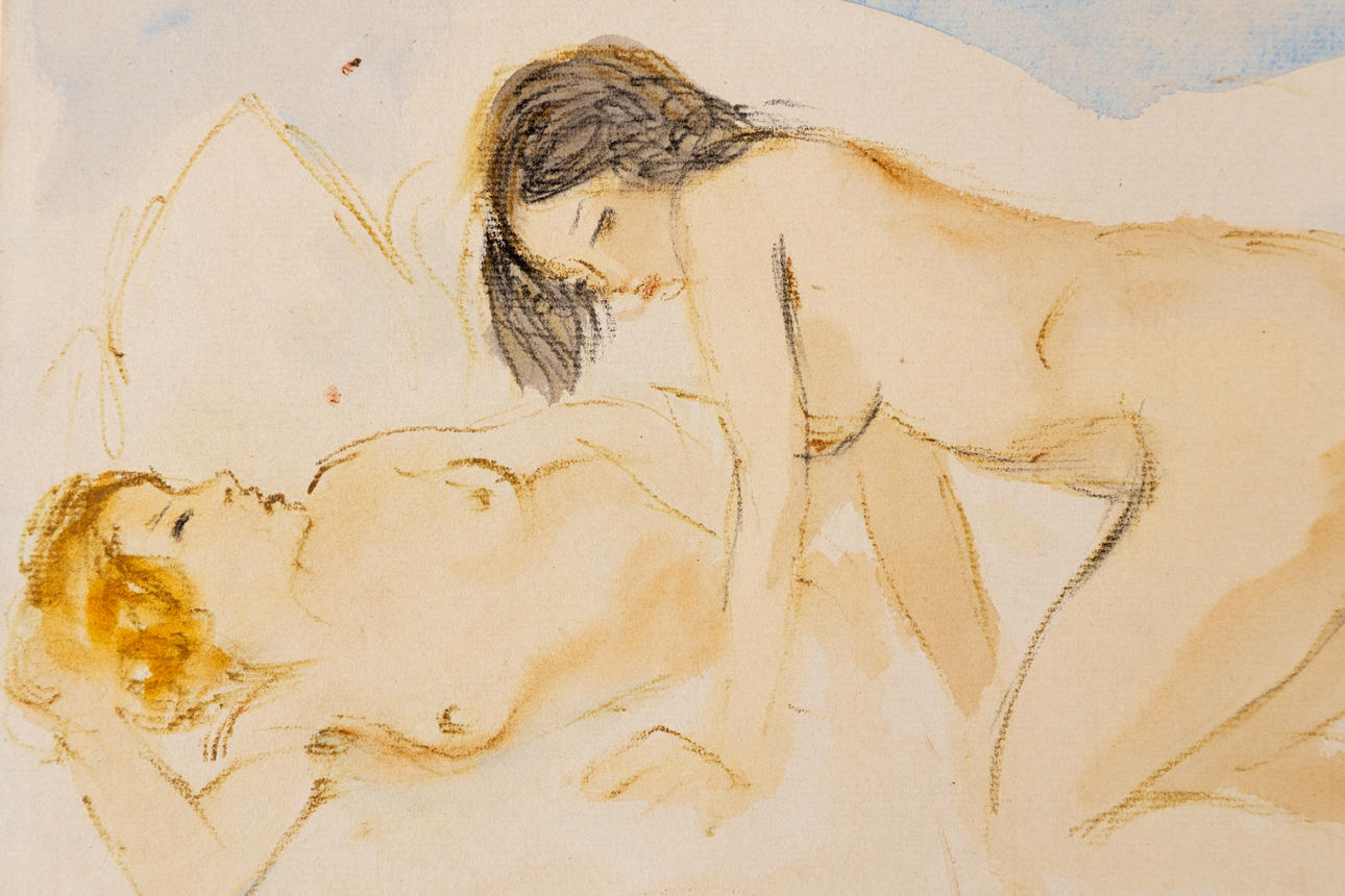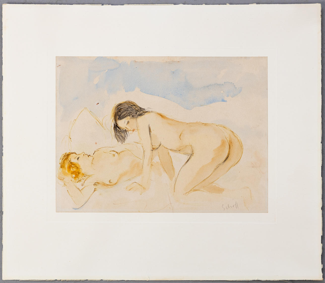 Otto Schoff (1888-1938), two acts, watercolor, signed, sheet size ca. 23 x 31 cm, firmly placed on vellum, a total of approx. 40.5 x 46.5 cm