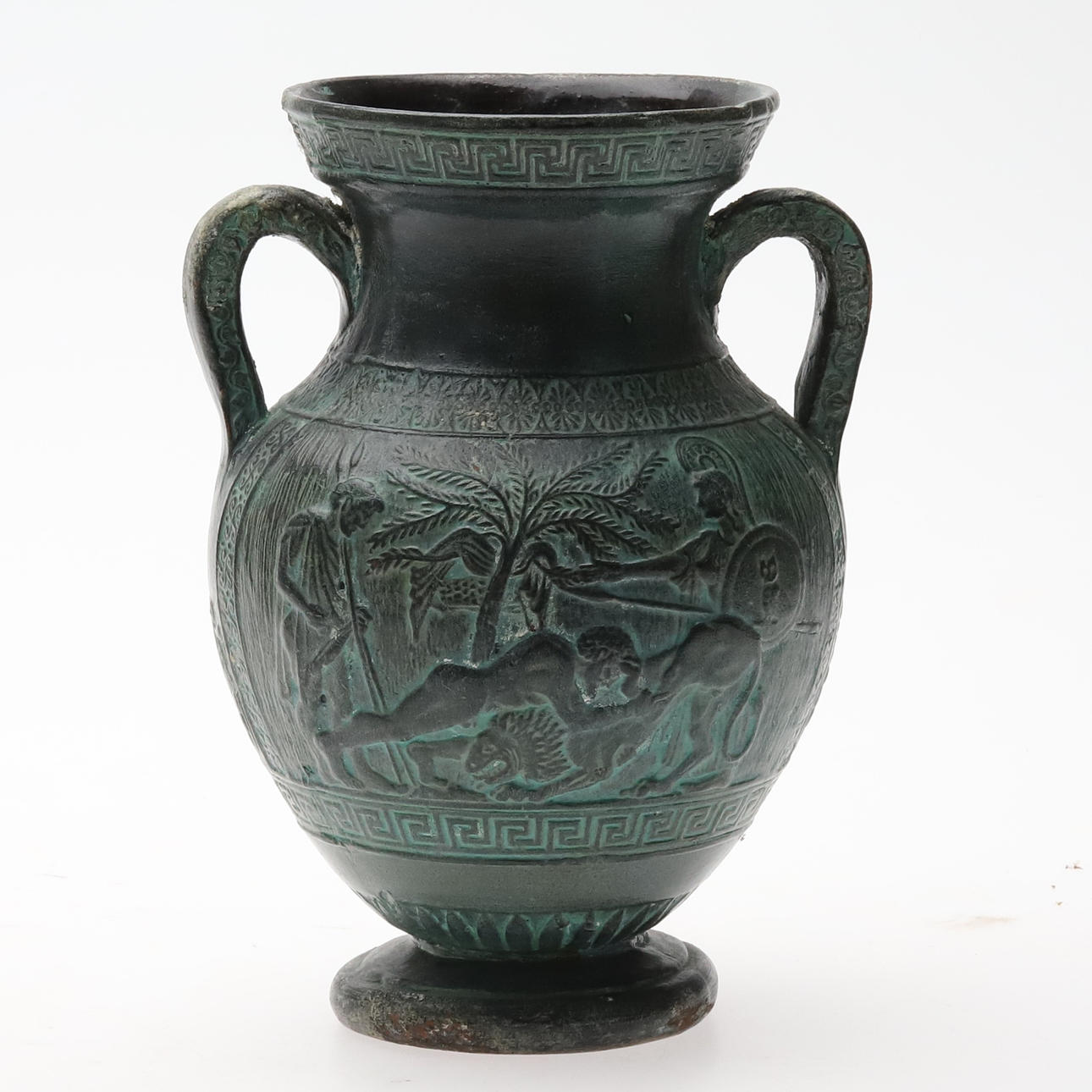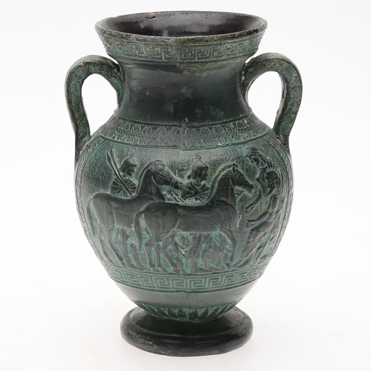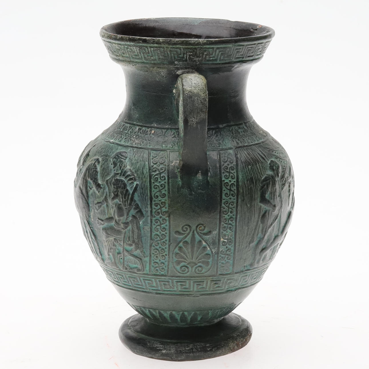 Glaze reminiscent of patinated bronze. Height 21 cm, diameter 16 cm.