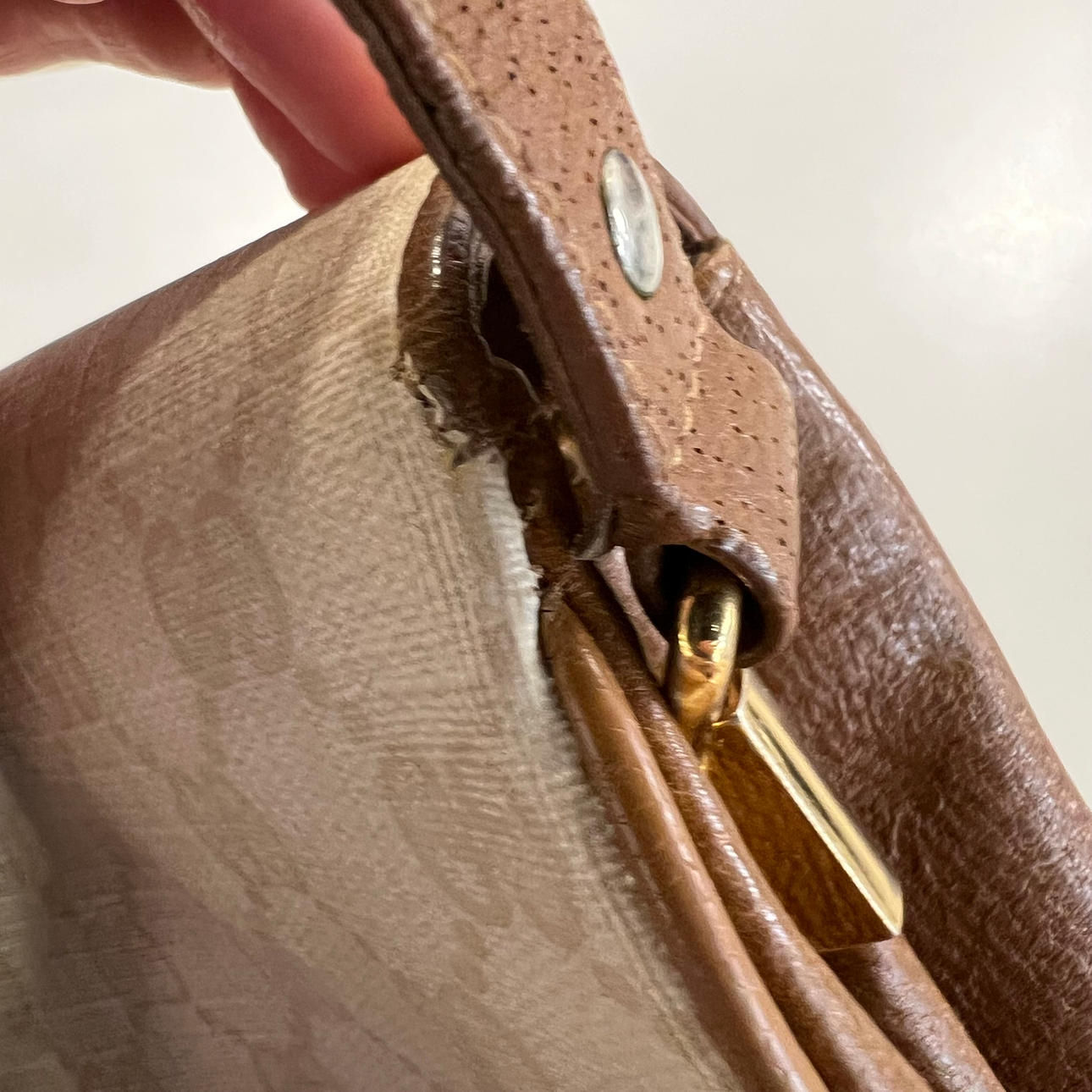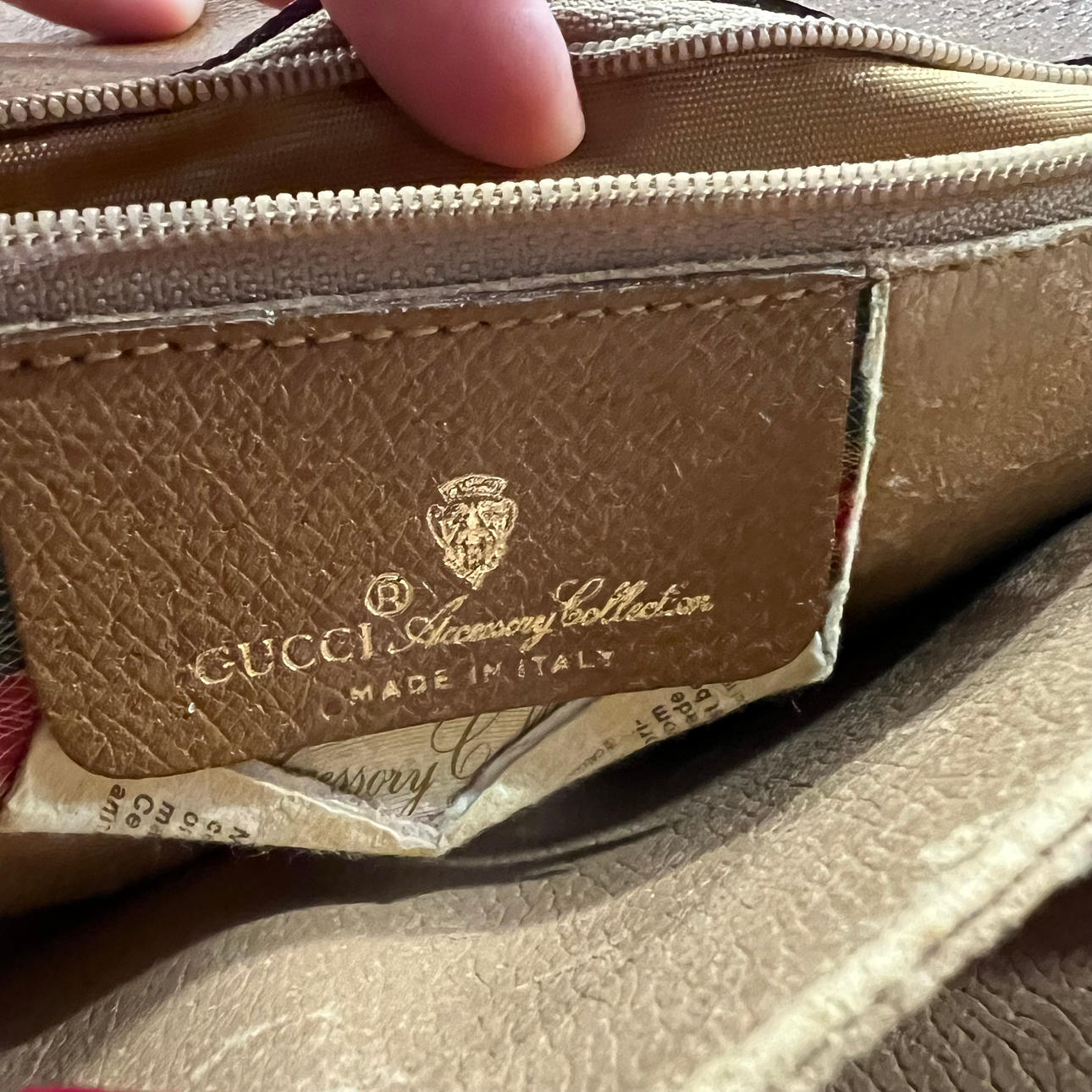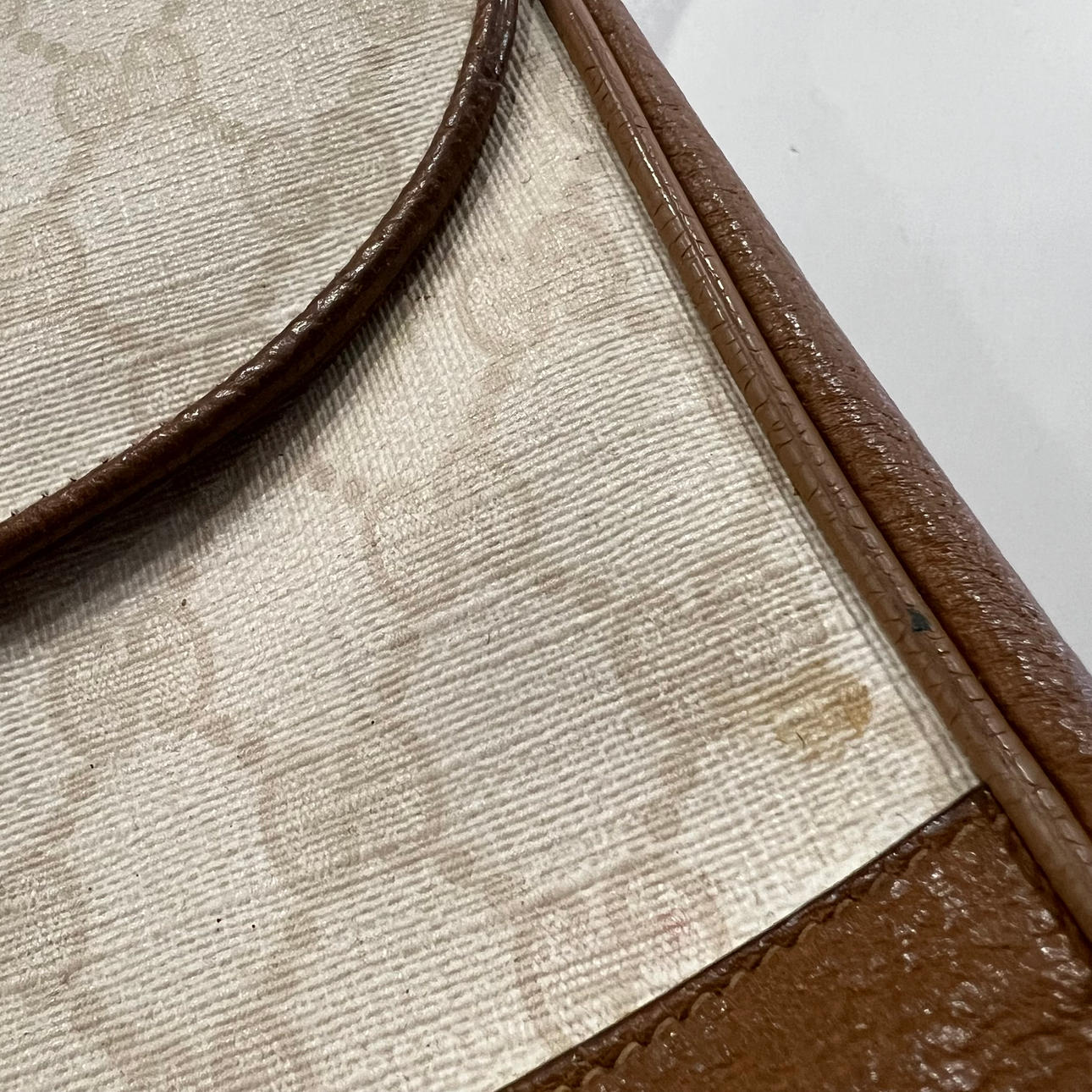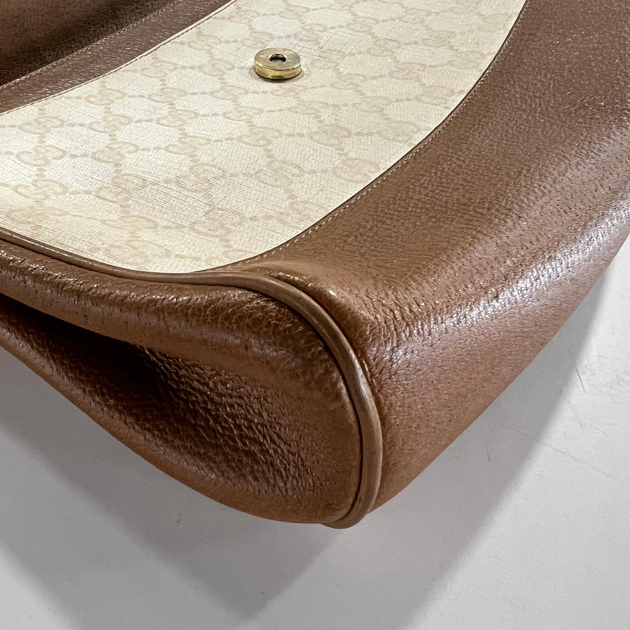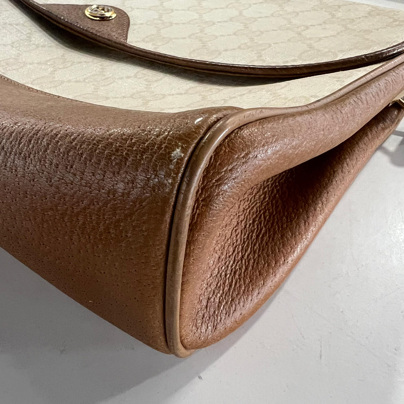 GUCCI. Canvas and leather bag, 80s.