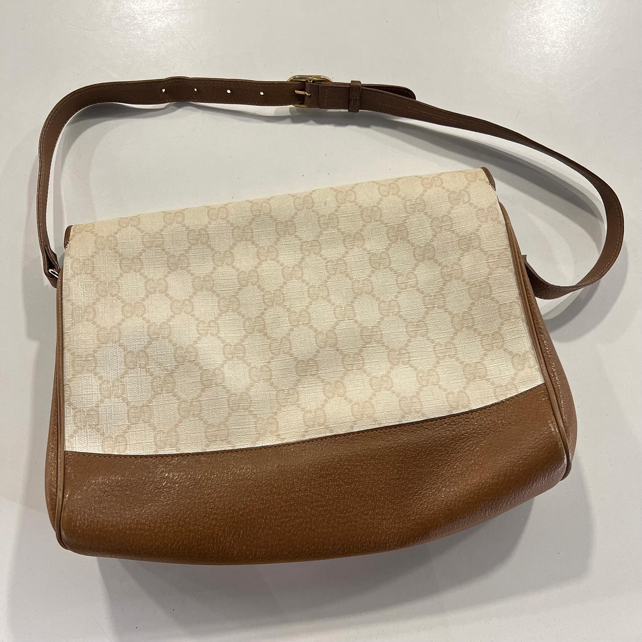 4388360. GUCCI. Canvas and leather bag, 80s.