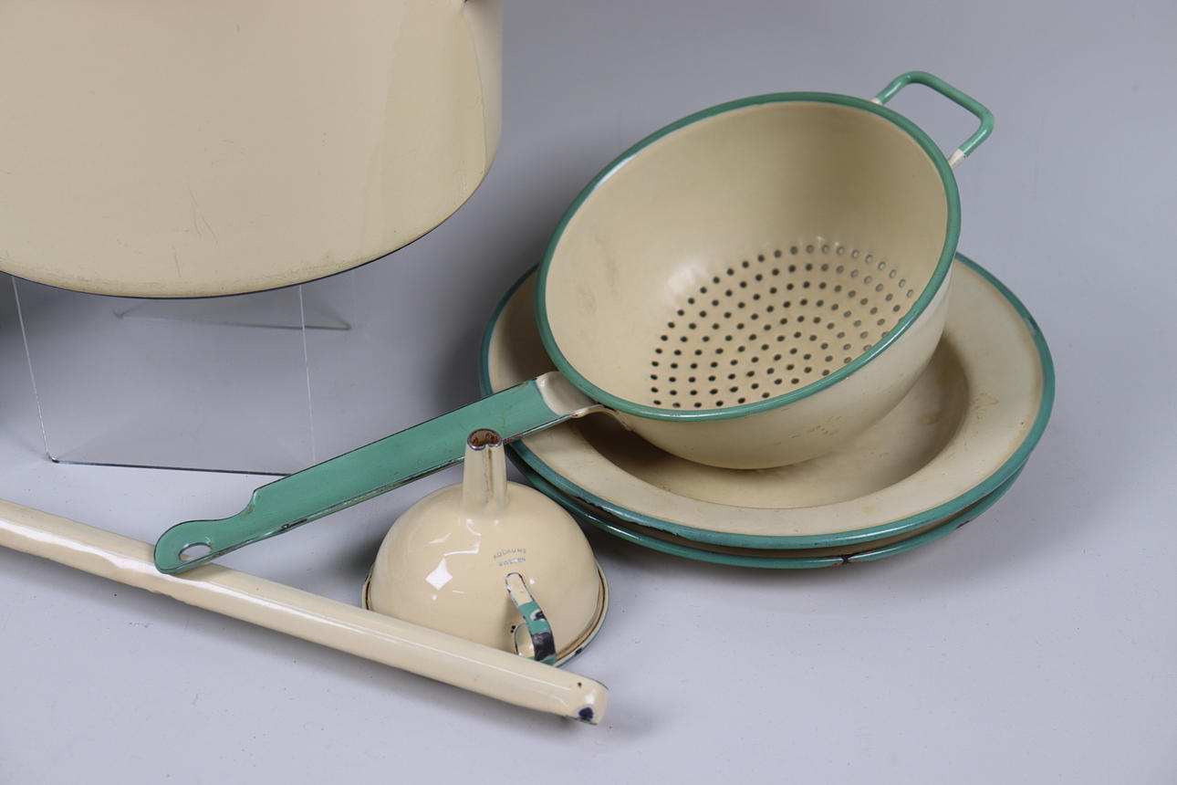 Normal wear and tear, marks, minor enamel chips.