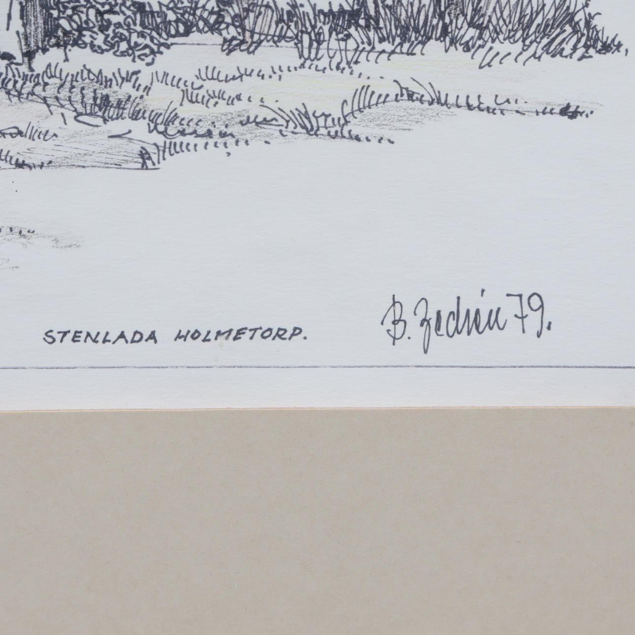 BERT ZEDRÉN. A drawing, ink, Stenlada, Holmetorp, signed, 1979.