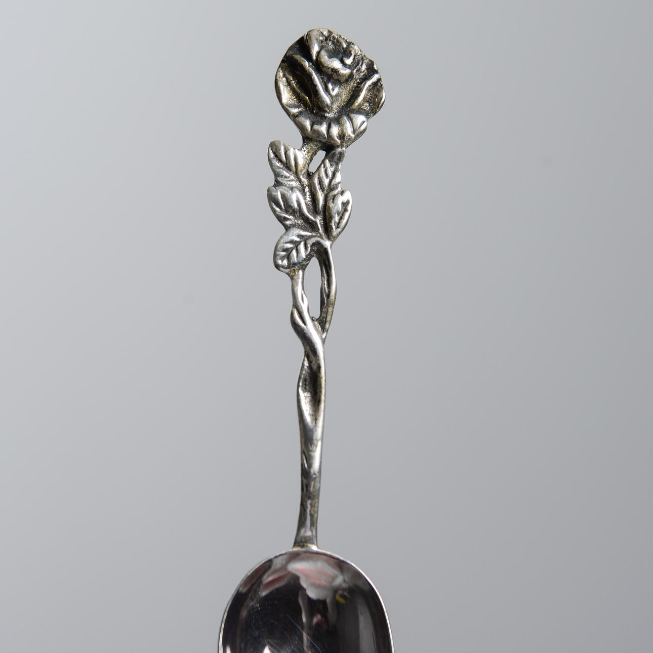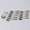 Spoons and tongs with floral decor. Length 9 cm. Weight 95 grams.