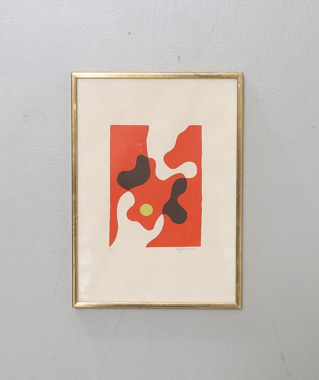 PIERRE OLOFSSON. Colour silkscreen, black on red, 2/70, signed.