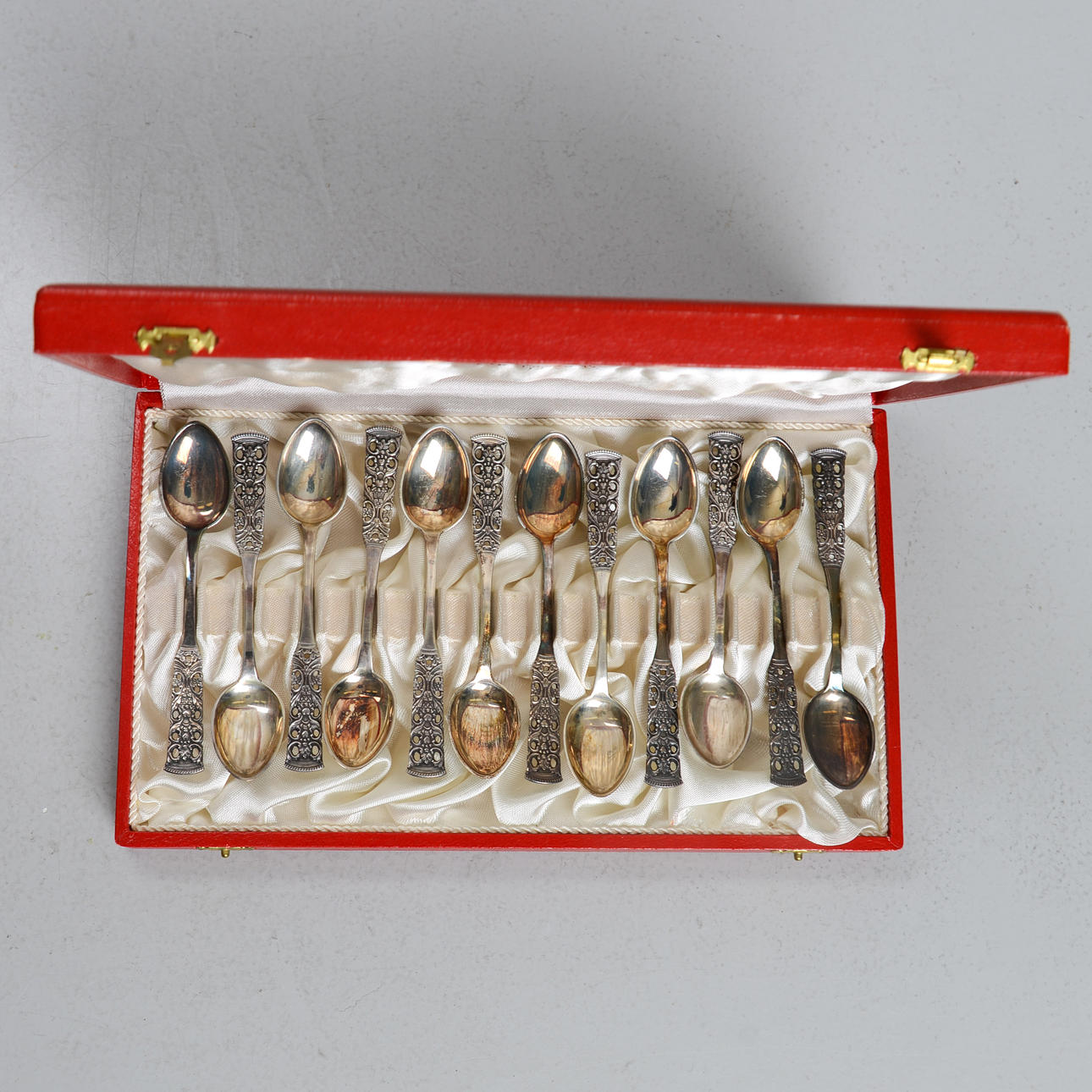 Teaspoons in case. Length 11 cm. Weight 120 grams.
