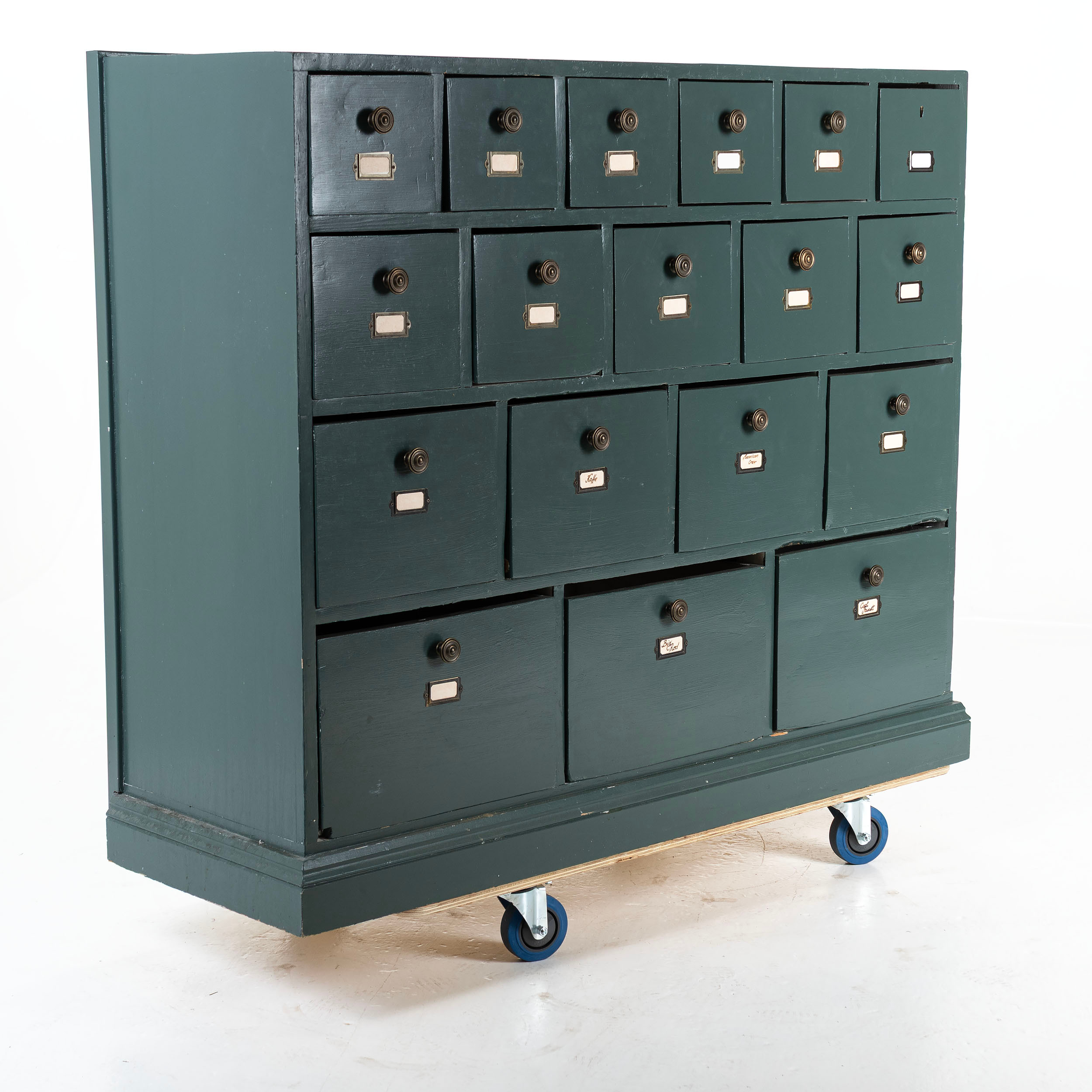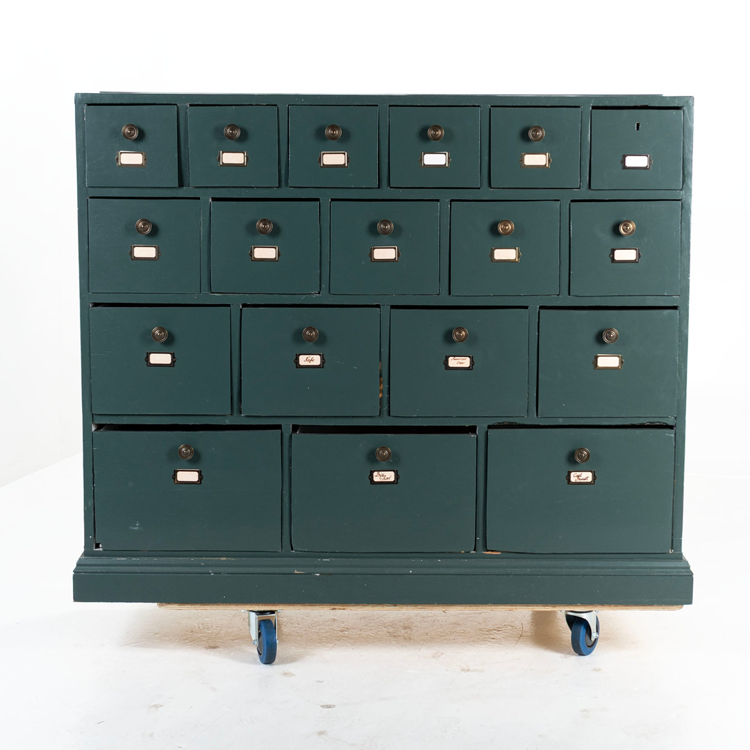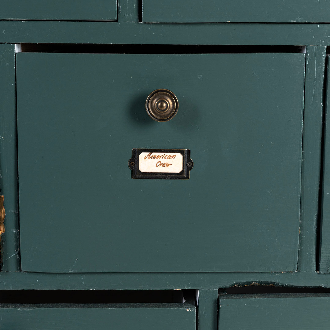 4389075. MERCHANT'S COUNTER, with 18 drawer compartments, painted.