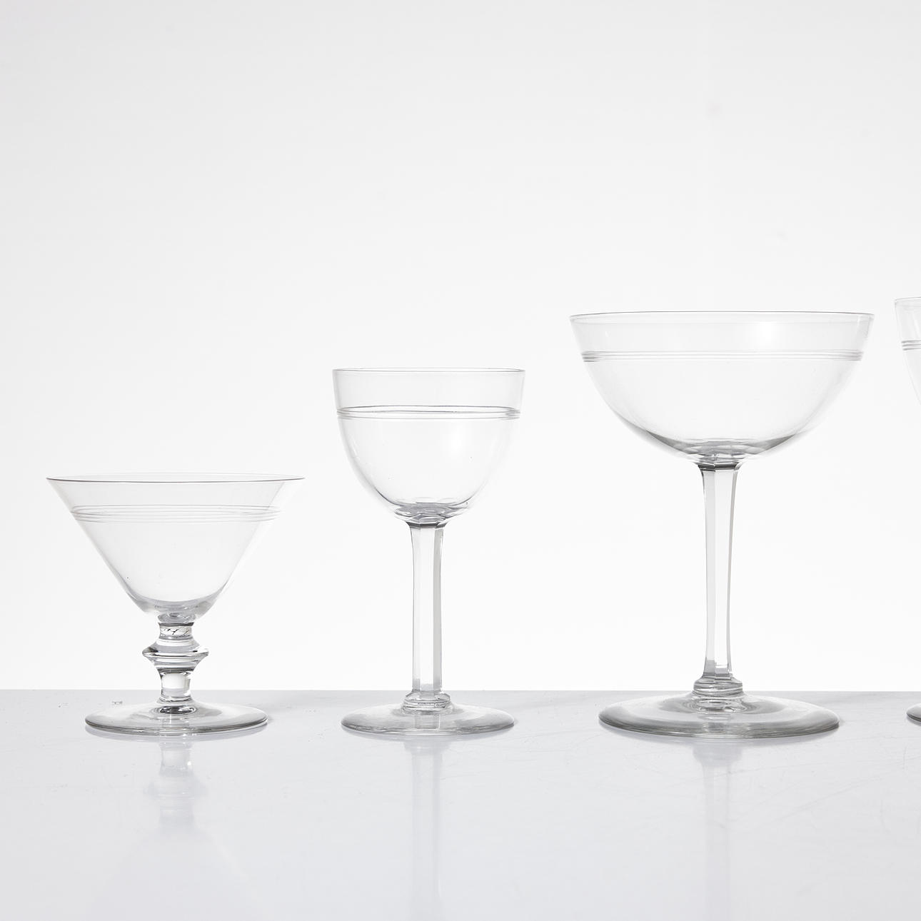 4389588. GLASS TABLEWARE, 85 pieces, probably “Piper” Skruf.