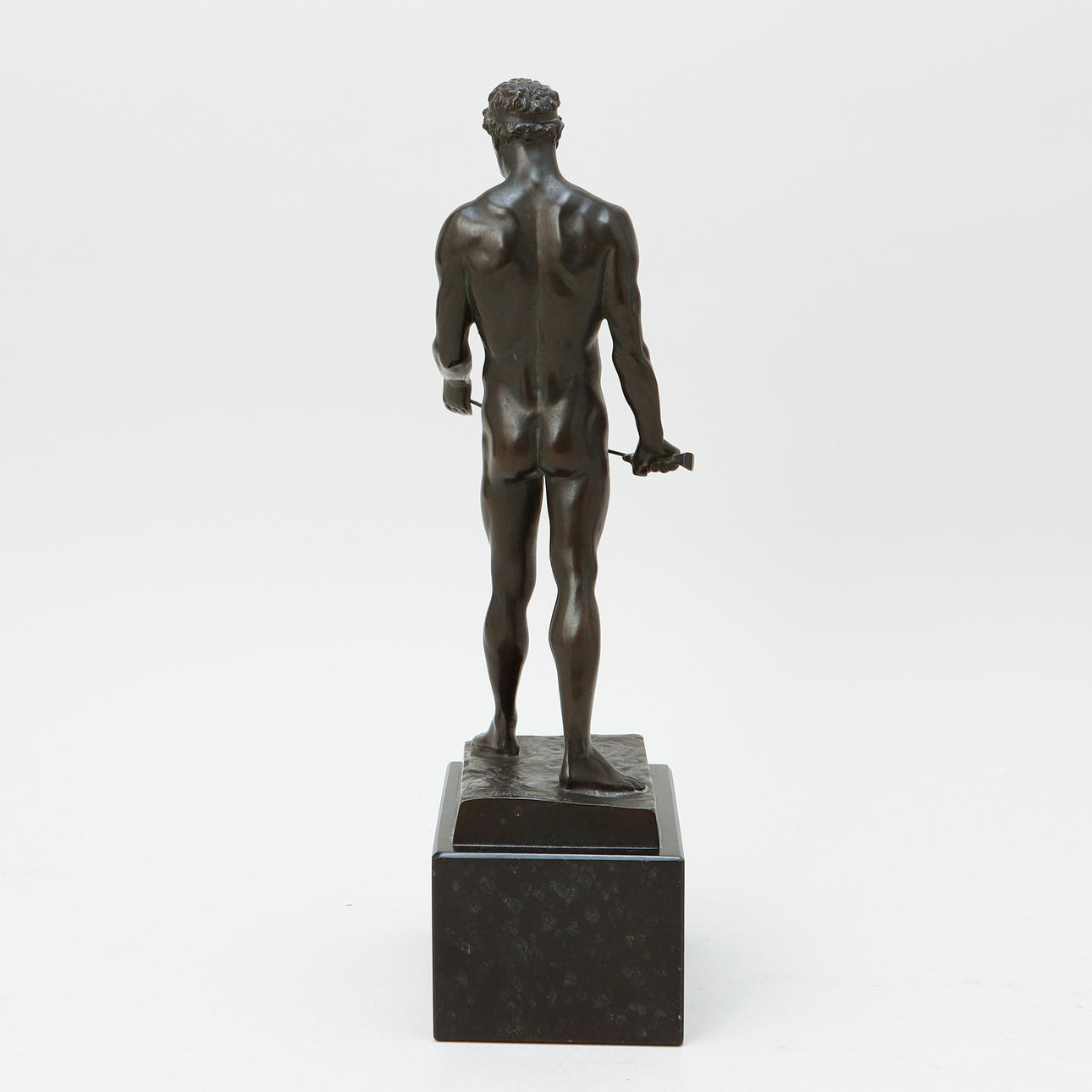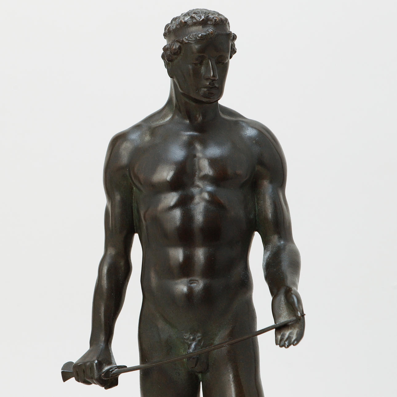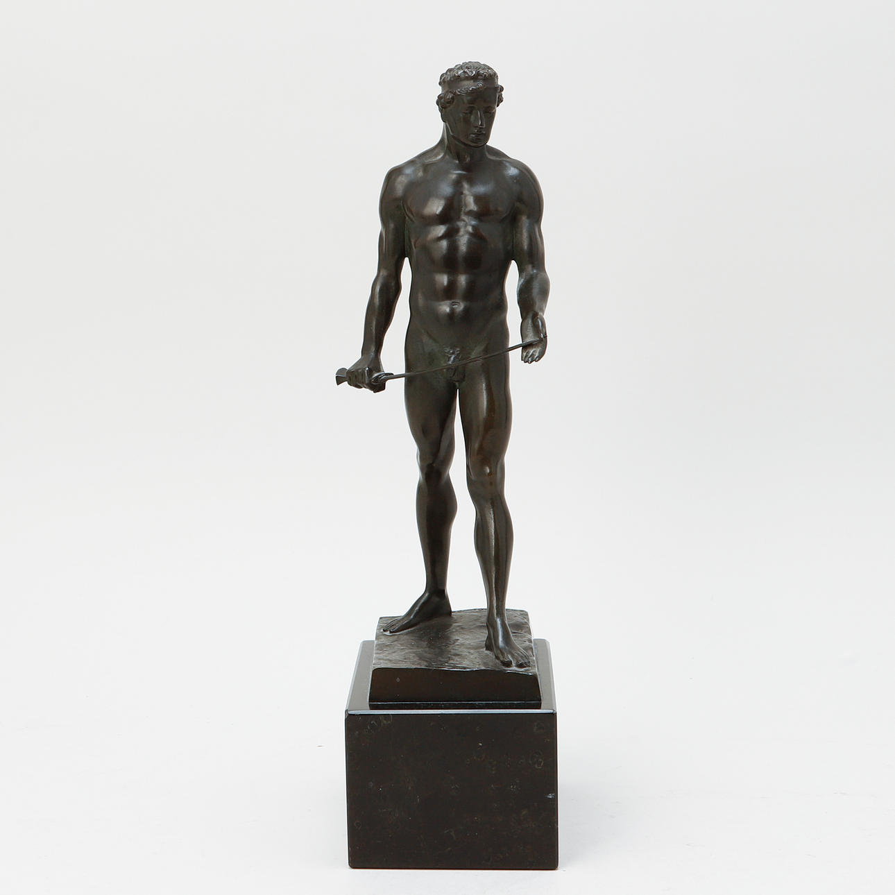 Depicting athlete with sword. Height 25 cm excluding plinth.