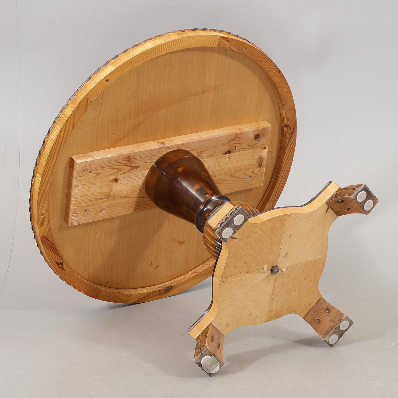 4389879. A 1940′s Birch/Root Veneer Pillar Table.