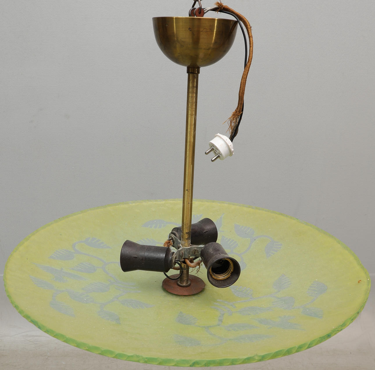 A mid 20th century raw glass ceiling lamp, plafond model.