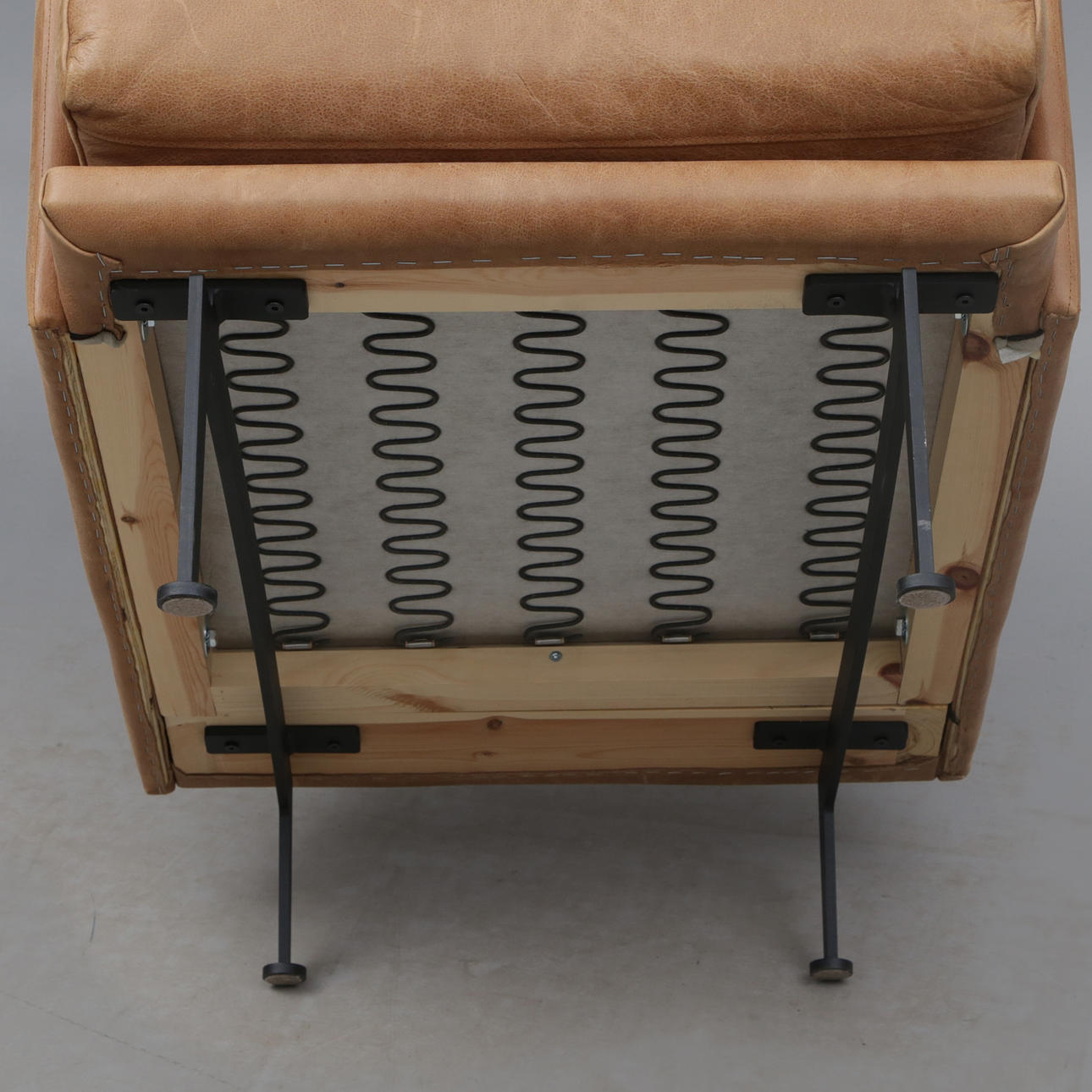 skins, metal legs, seat and back cushions made of cold foam, polyether and seabird feathers,