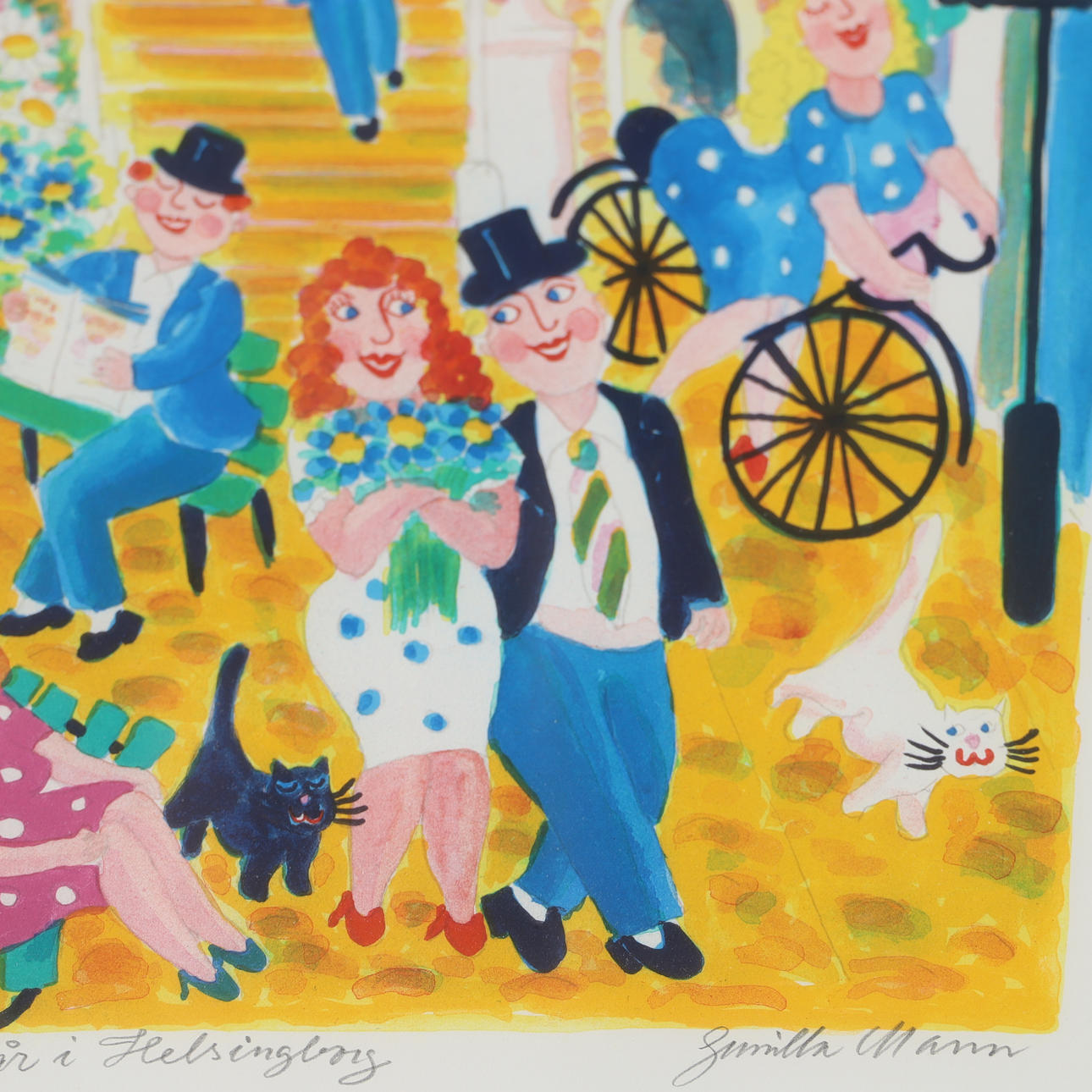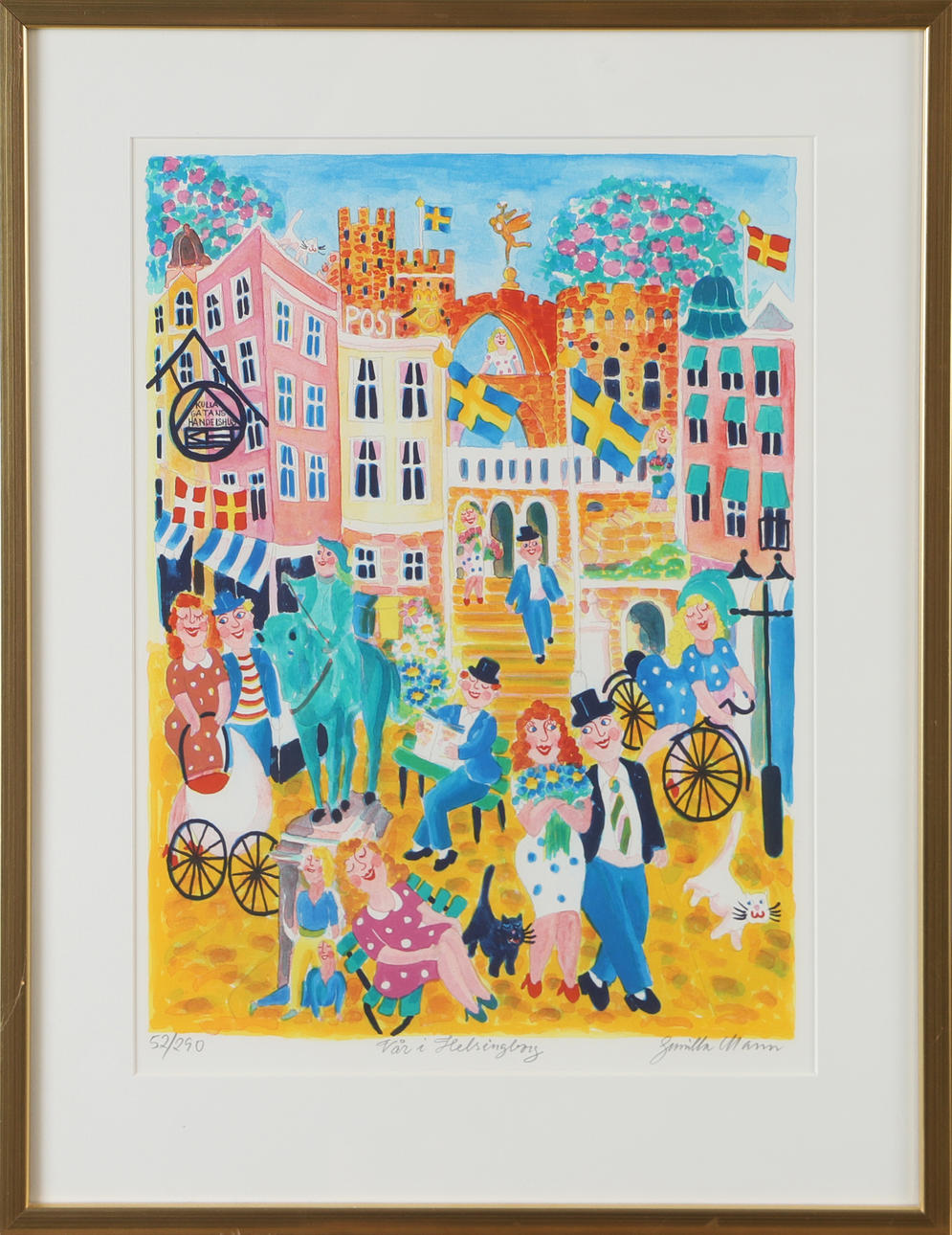 GUNILLA MANN. “Vår i Helsingborg”, lithograph in colours, signed.