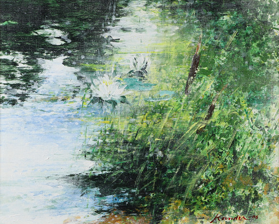 LEIF KANDER. “Backlight in spring”, oil on canvas, signed and dated Kander -92.
