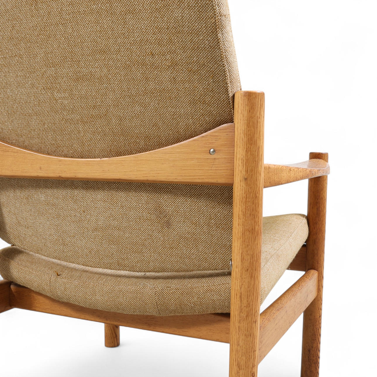 Armchair with upholstered seat, neck pillow and frame in oak Backrest height 109, seat height 39, seat depth 50, width 71 cm.